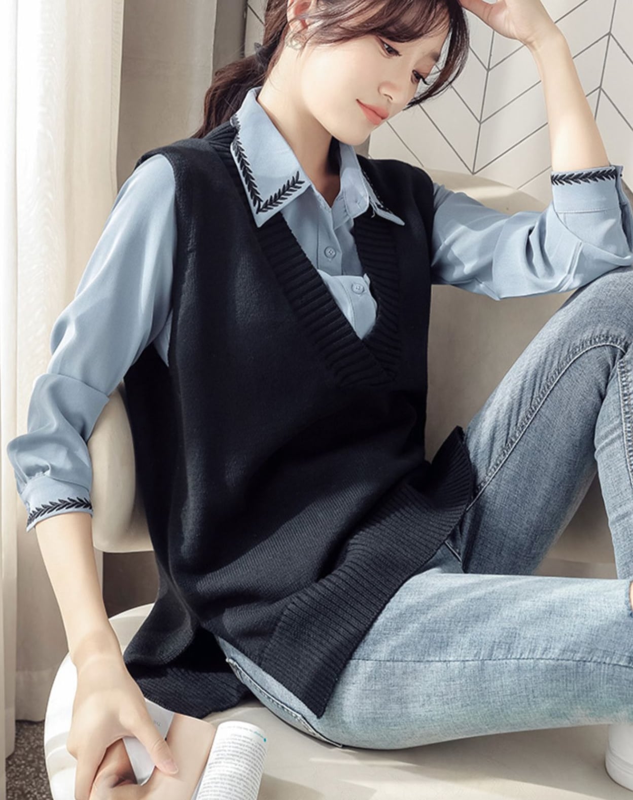 学生風 トップス ニットソー セーター ベスト 袖なし ノースリーブ Vネック ストレート ワイド Iライン ニット かわいい 大人可愛い きれいめ シンプル カジュアル 大人 上品 おしゃれ お洒落 かっこいい レトロ 大人女子 こなれ感 ラフ ラブリー キュート ガーリー ルーズ クール モード系 エレガント 抜け感 無地 秋 冬 10代 20代 30代 40代 オフィス ビジネス デート お出かけ 女子会 休日 着回し 普段使い 韓国 韓国系 オルチャン ファッション コーデ スタイル 楽ちん モテ | Ritta