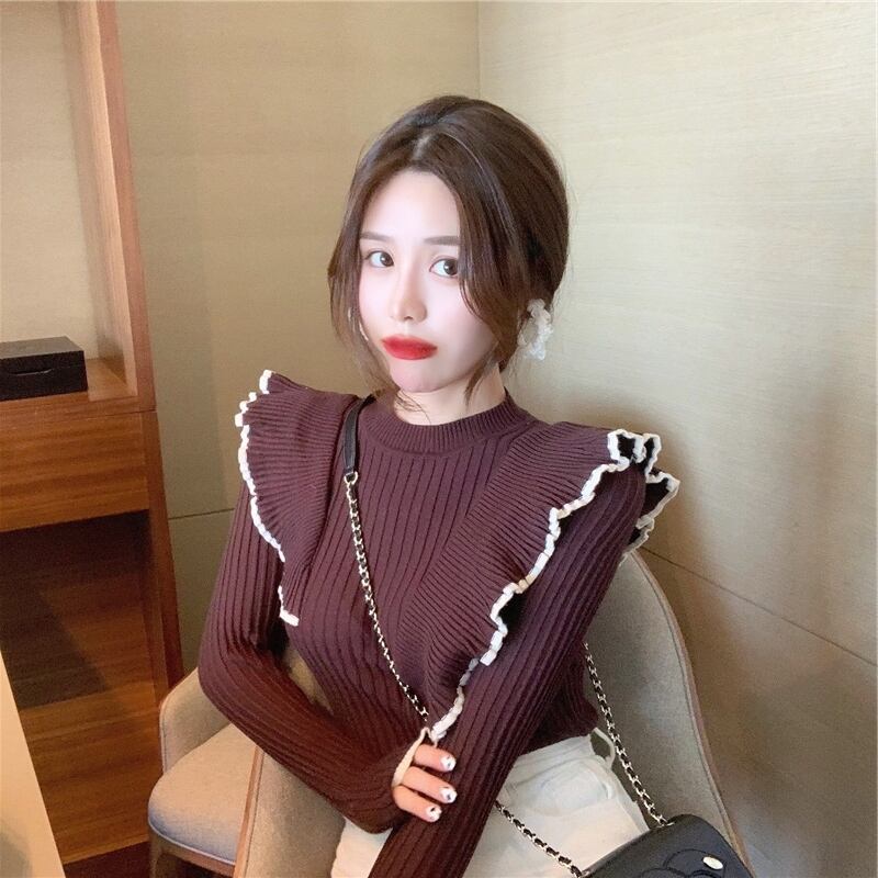 トップス ニットソー セーター 袖あり 長袖 ハイネック スリム タイト ストレート フリル ニット かわいい 大人可愛い きれいめ シンプル カジュアル 大人 上品 おしゃれ お洒落 かっこいい レトロ 大人女子 こなれ感 ラフ ラブリー キュート ガーリー エレガント 抜け感 無地 春 秋 冬 10代 20代 30代 レディース デート お出かけ 女子会 休日 着回し 普段使い 韓国 韓国系 オルチャン ファッション コーデ スタイル 楽ちん モテ 定番 プチプラ トレンド 流行 インスタ映え | Ritta