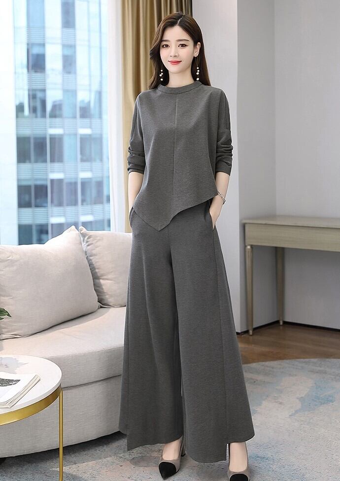 トップス ボトムス パンツ セットアップ カットソー ワイドパンツ マキシ丈 長袖 ラウンドネック フレア ワイド アシンメトリー ウエストゴム 上下セット 2点セット ツーピース きれいめ シンプル カジュアル 大人 上品 おしゃれ 大人女子 こなれ感 エレガント フォーマル 無地 春 秋 入学式 入園式 卒業式 卒園式 謝恩会 20代 30代 ママ ビジネス OL お出かけ イベント レストラン 着回し 普段使い 体系カバー 脚長 M L XL 2XL 3XL 大きいサイズ ビッグサイズ ゆったり | Ritta