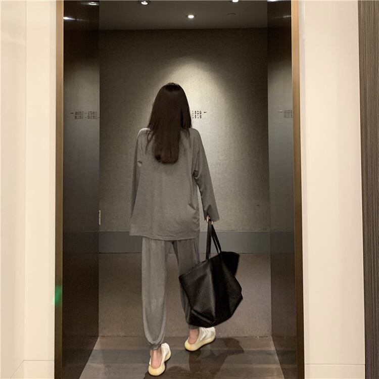 ツーピースルームウェア ツーピースパジャマ 上下セット 上下パジャマ 部屋着 寝巻き ナイトウェア プルオーバーアンクル丈 袖あり 長袖 ドロップショルダー ラウンドネック 伸縮性 シンプル ラフ ルーズ 無地 春 秋 10代 20代 30代 40代 レディース 女性用 ママ マタニティ お泊まり 旅行 普段使い 楽ちん 体型カバー M L XL 2XL ゆったり ゆる ダークグレー リラックス 持ち運び セットアップ ご近所 ウエストゴム リラックスウェア 着心地抜群 修学旅行 | Ritta