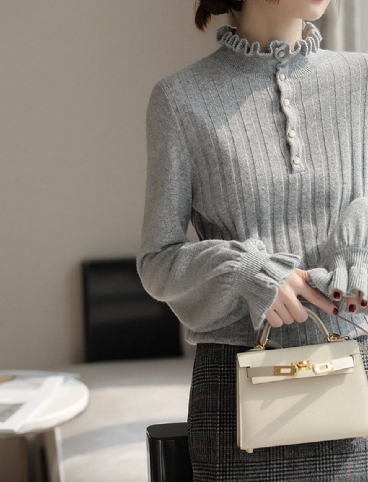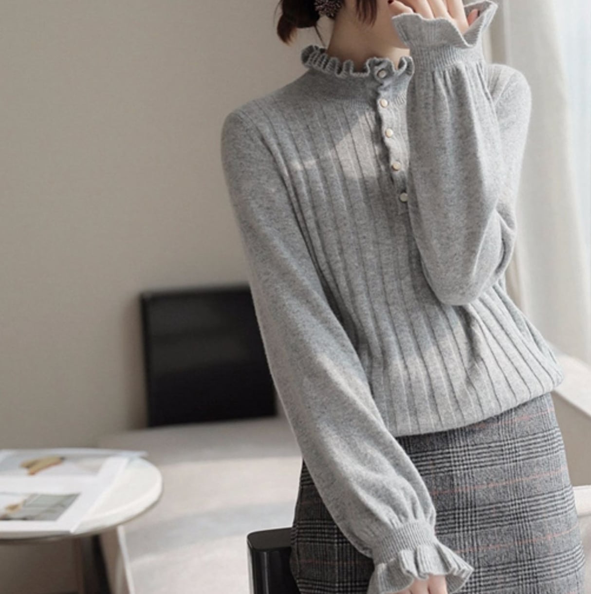 大人可愛いハイネックニット。