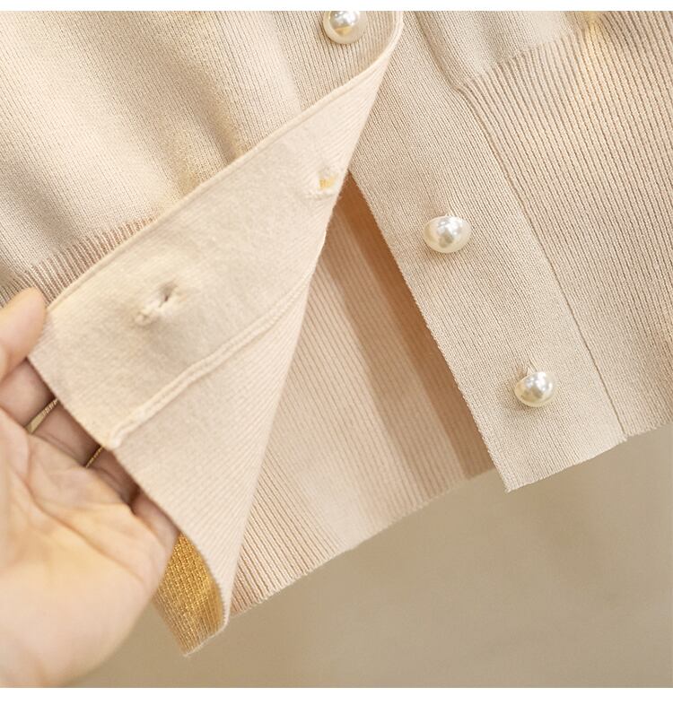 パールのボタンが可愛らしく、魅力的なアイテム。