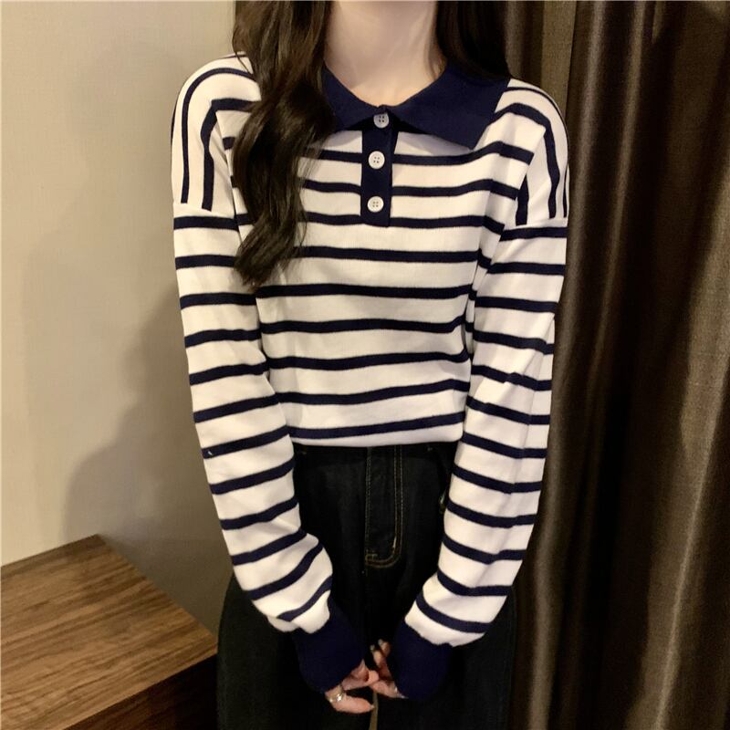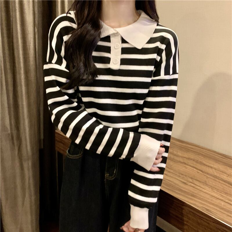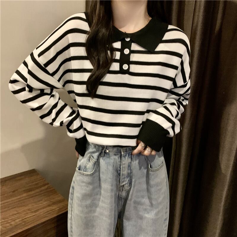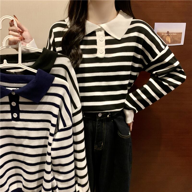 トップス カットソー ポロシャツ 袖あり 長袖 ドロップショルダー Uネック 襟付き ストレート リブ リブニット 伸縮性 ニット 薄手 かわいい 大人可愛い シンプル カジュアル 大人 上品 おしゃれ お洒落 こなれ感 ラフ ボーイッシュ スポーティー キュート ルーズ 存在感 ボーダー 春 秋 レディース 女性用 ママ OL 学生 デート お出かけ 公園デビュー お泊まり 休日 運動 アウトドア イベント リゾート 旅行 普段使い 楽ちん 体系カバー 定番 トレンド 流行 フリーサイズ ゆったり | Ritta