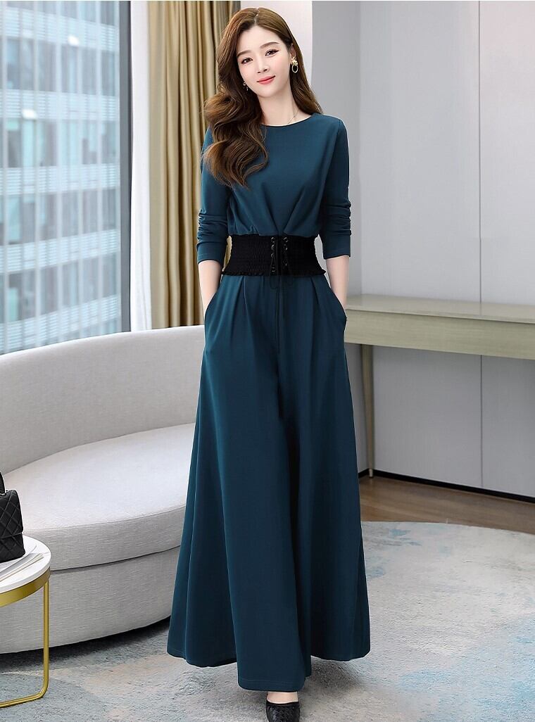 ウエストゴムでゆったり着られるのにウエストマークで細見えでき、ハイウエストなので脚長効果も抜群です。