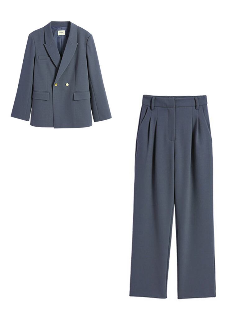 スーツでも固い雰囲気にならない、ワイドパンツとオーバーサイズ風のジャケットのセットアップ。