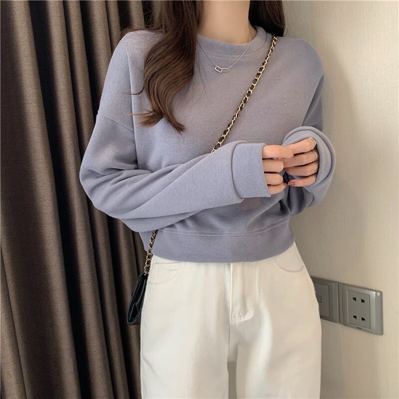 キレイな大人カラーが可愛い。着丈が短めなので、ハイウエストのボトムスとの相性がいい一枚です。