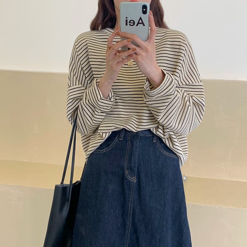 トップス Tシャツ 袖あり 長袖 萌袖 Uネック 襟なし かわいい 大人可愛い きれいめ シンプル カジュアル 大人 上品 おしゃれ レトロ 大人可愛い 大人女子 こなれ感 ラフ ルーズ 主役級 とろみ感 抜け感 ボーダー 着回し 普段使い 重ね着 ファッション コーデ スタイル 楽ちん モテ トレンド 流行 サイズ M L XL 2XL 色展開 ブラック ブラウン 大人カラー ベイクドカラー | Ritta