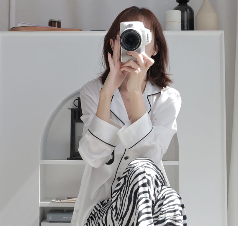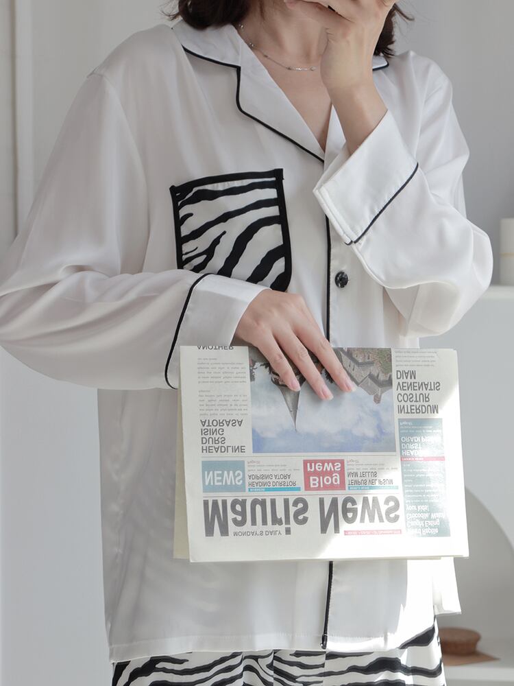ゼブラ柄×ホワイトが大人っぽいルームウェアツーピースセット。