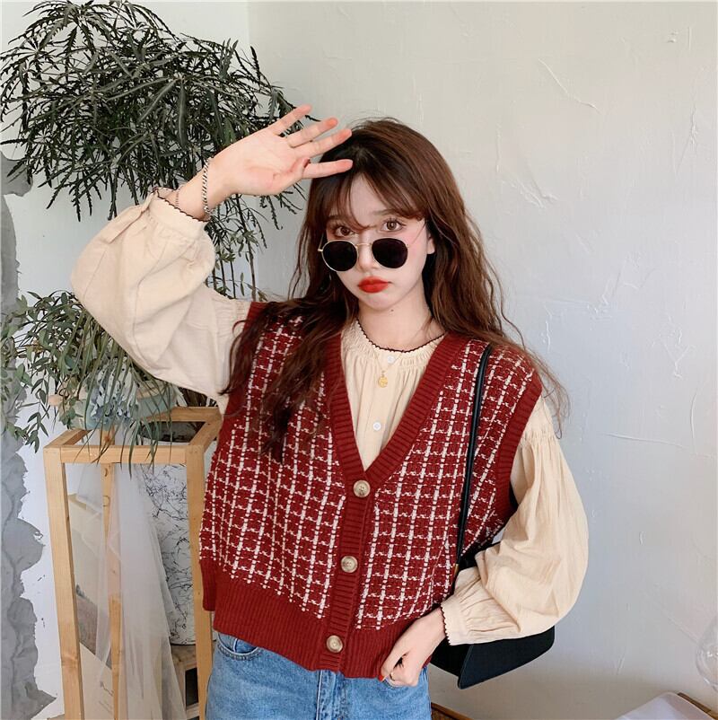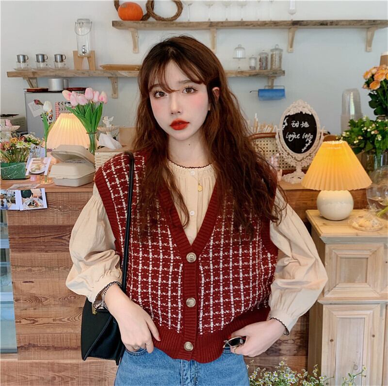 ニットベスト×ボリュームブラウス2点セット トップス ブラウス ベスト 袖なし 袖あり ボリューム袖 Vネック ラウンドネック 前開き 伸縮性 2点セット ツーピース かわいい 大人可愛い シンプル カジュアル おしゃれ お洒落 レトロ こなれ感 無地 格子柄 春 秋 10代 20代 30代 40代 レディース 女性用 お出かけ 休日 着回し 普段使い 重ね着 ファッション コーデ スタイル 楽ちん 体型カバー フリーサイズ ゆったり 黒 ブラック 赤 レッド アプリコット | Ritta