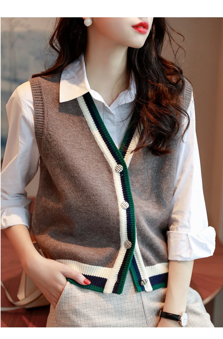 3色ラインショート丈ニットベスト トップス ベスト ショート ショート丈 袖なし ノースリーブ Vネック ストレート リブ 前開き 伸縮性 かわいい 大人可愛い きれいめ シンプル カジュアル 大人 上品 おしゃれ お洒落 レトロ 大人女子 こなれ感 春 秋 10代 20代 30代 40代 レディース 女性用 お出かけ 休日 着回し 普段使い 重ね着 ファッション コーデ スタイル 楽ちん S M L 灰色 グレー ベージュ 大人カジュアル きれいめコーデ スタイルアップ効果 | Ritta
