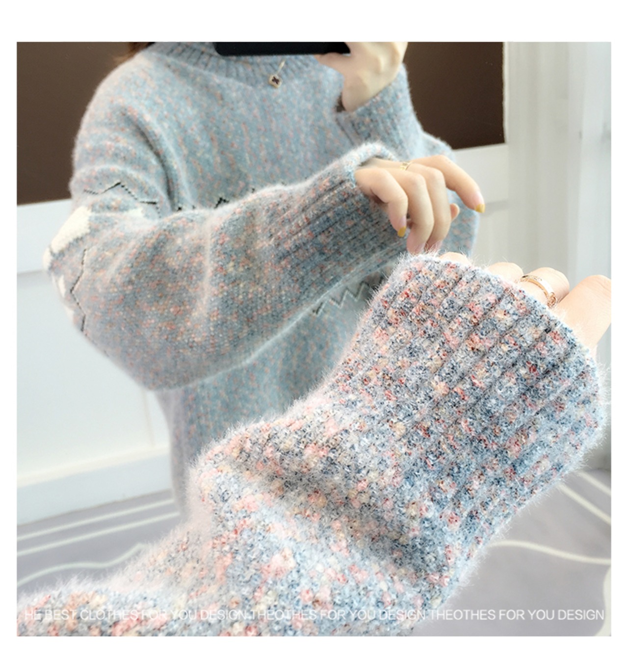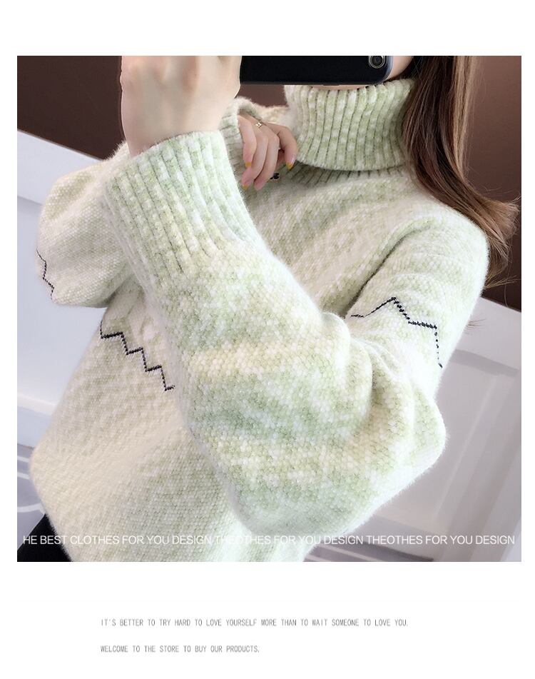 雪柄とミックスニットがおしゃれなタートルネックセーター。