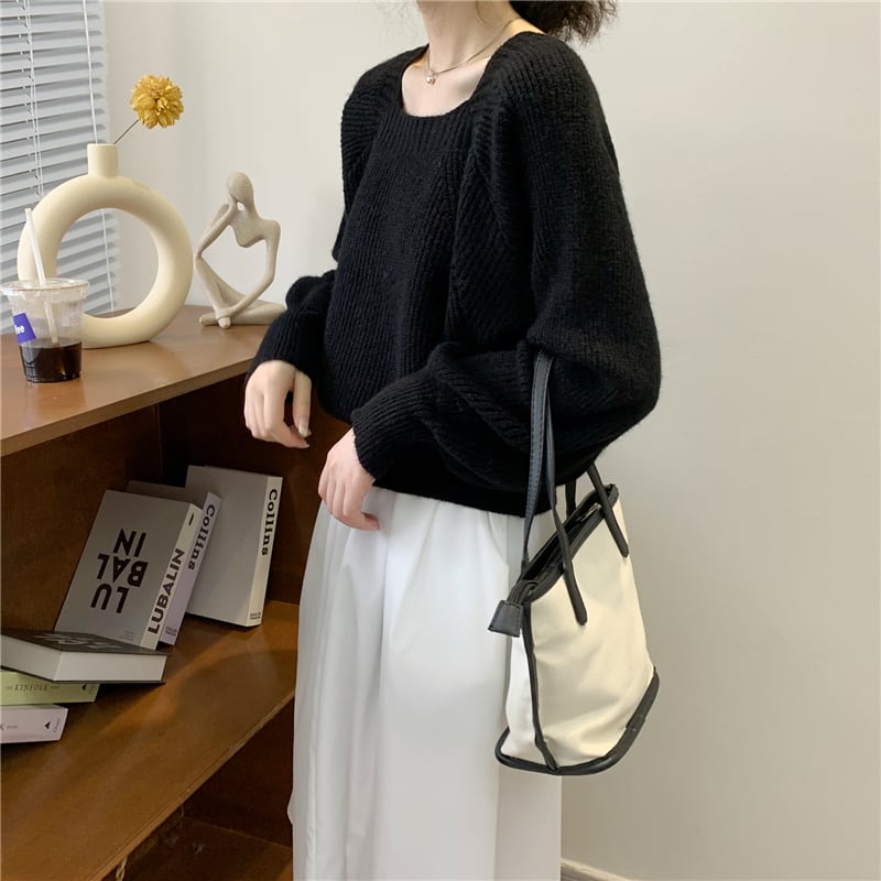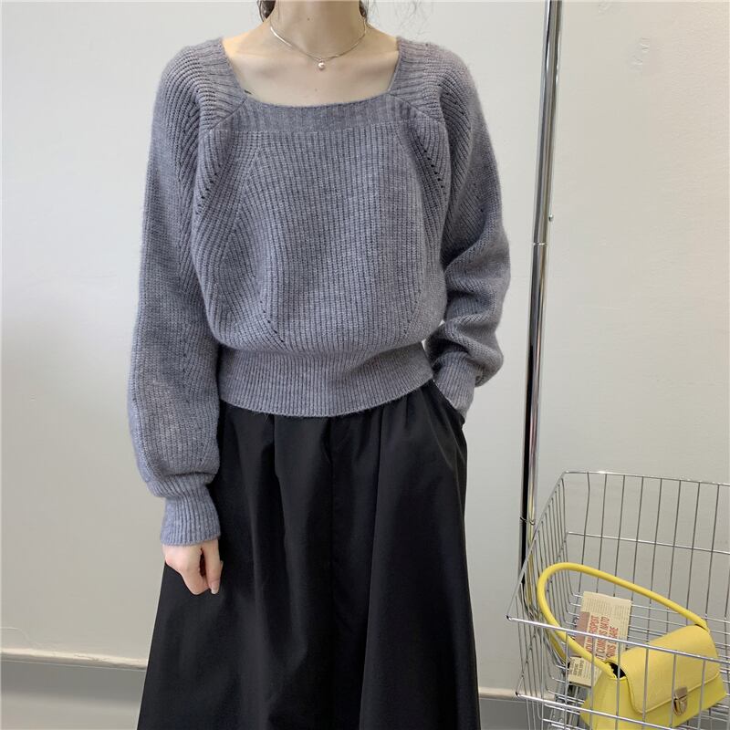 スクエアネックで、後ろ姿も美しいニットセーターです。