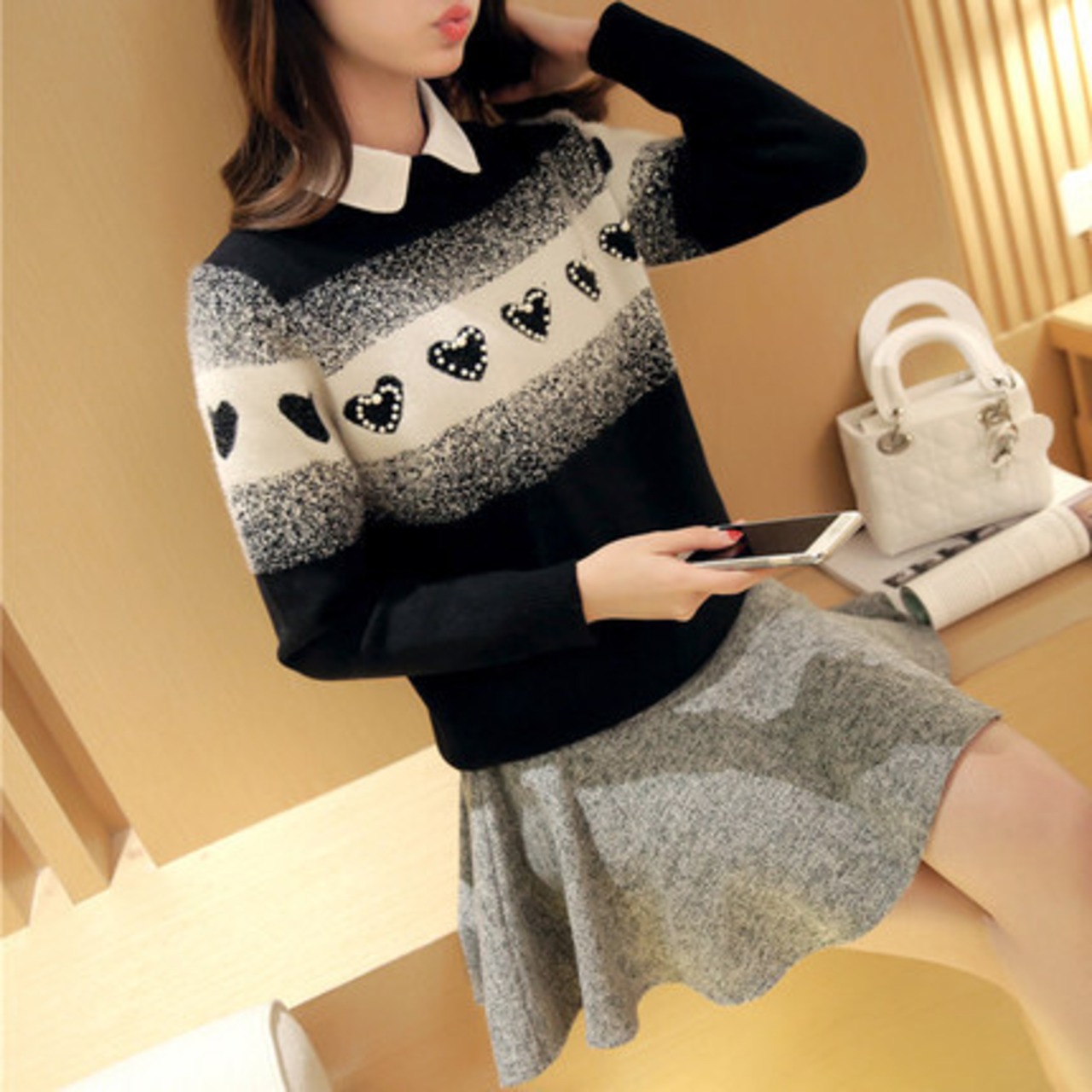 トップス ニットソー セーター 袖あり 長袖 襟付き ストレート Aライン ニット かわいい 大人可愛い きれいめ シンプル カジュアル 大人 上品 おしゃれ お洒落 かっこいい レトロ 大人女子 こなれ感 ラブリー キュート ガーリー ルーズ 個性的 クール モード系 エレガント 主役級 存在感 とろみ感 抜け感 柄 春 冬 10代 20代 30代 レディース デート お出かけ 女子会 休日 着回し 普段使い 韓国 韓国系 オルチャン ファッション コーデ スタイル 楽ちん モテ 定番 プチプラ | Ritta