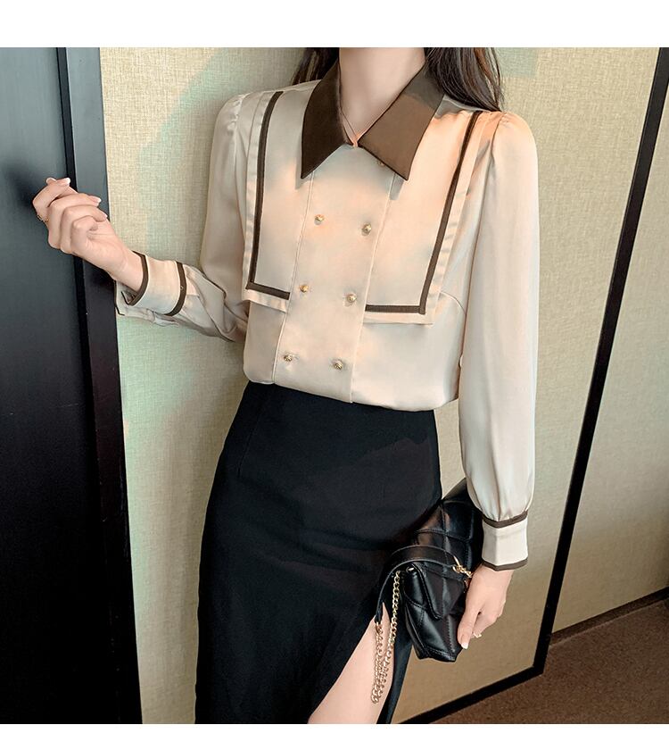 セーラー風長袖ブラウス トップス ブラウス 袖あり 長袖 襟付き ストレート かわいい 大人可愛い シンプル カジュアル 上品 おしゃれ お洒落 レトロ 大人女子 こなれ感 ラフ 個性的 存在感 とろみ感 無地 春 秋 入学式 入園式 卒業式 卒園式 謝恩会 20代 30代 40代 レディース 女性用 OL 通勤 お出かけ 休日 着回し 普段使い 重ね着 ファッション コーデ スタイル S M L XL 2XL 光沢 アプリコット オフィスコーデ カジュアルコーデ ジャケットイン バイカラー | Ritta