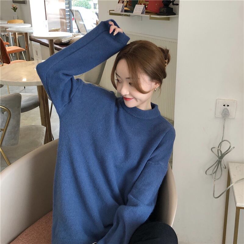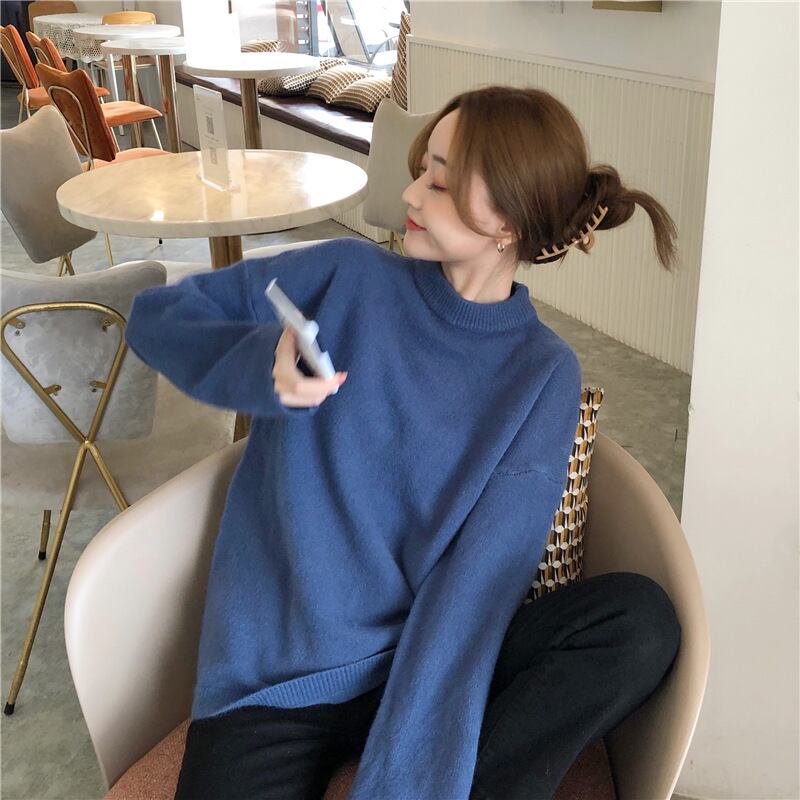 定番の形のニットセーター。合わせやすい形なので、