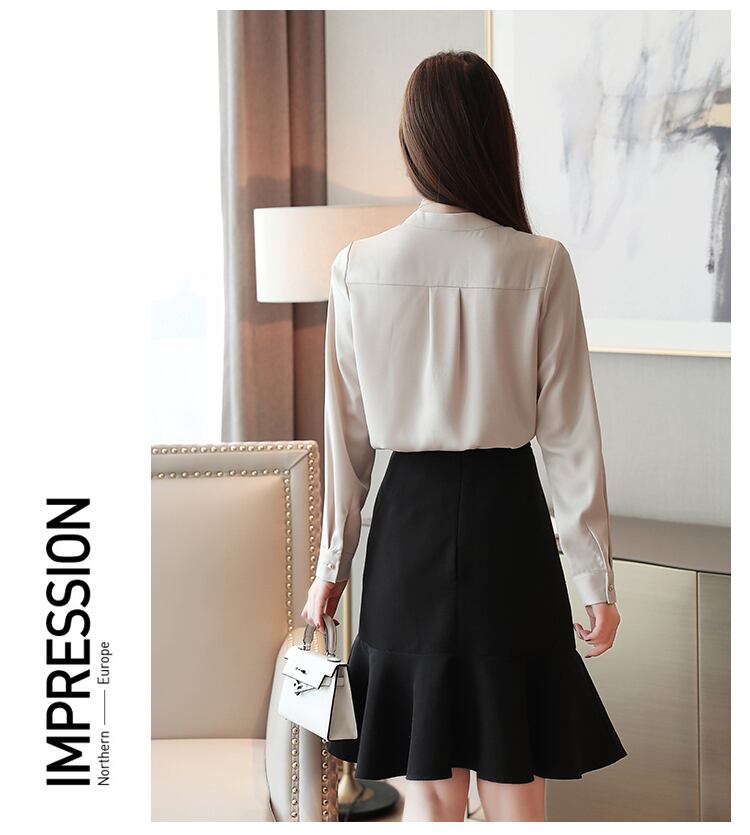 光沢感のあるシフォン生地が大人っぽいシフォンブラウス。