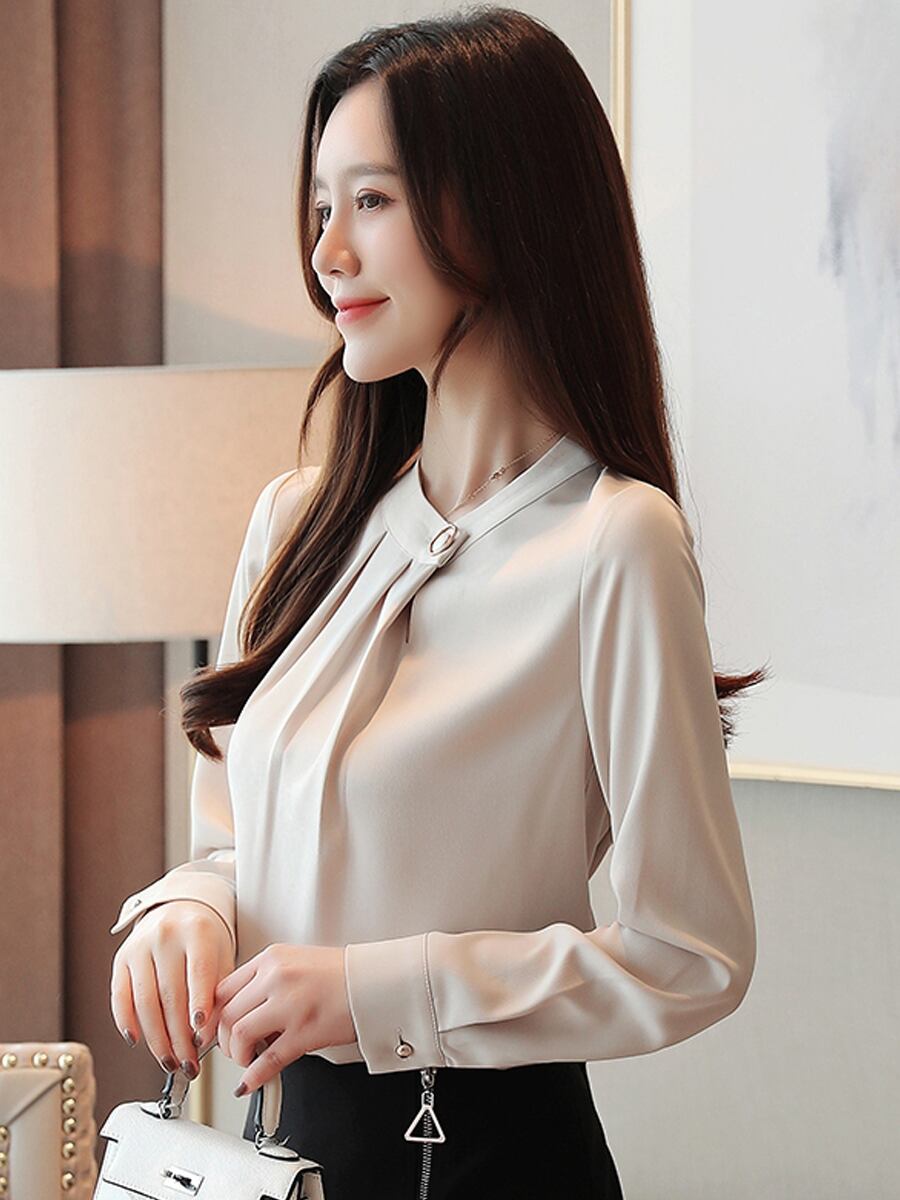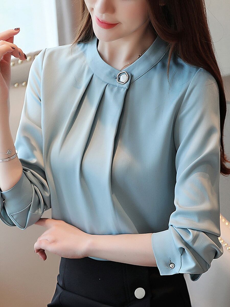サテンブラウス トップス シャツ ブラウス 袖あり 長袖 スタンドカラー ストレート プリーツ シフォン かわいい 大人可愛い きれいめ シンプル 大人 上品 おしゃれ お洒落 大人女子 こなれ感 エレガント フォーマル とろみ感 無地 春 秋 入学式 入園式 卒業式 卒園式 謝恩会 20代 30代 40代 レディース 女性用 お出かけ 休日 着回し 普段使い ファッション コーデ スタイル S M L XL 2XL 青 ブルー シャンパン オフィスコーデ フォーマルシーン オフィスカジュアル | Ritta