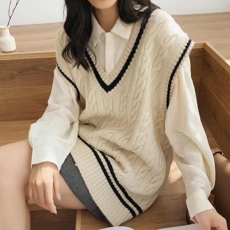 ドロップショルダーなどオーバーサイズなシルエットが可愛い、カレッジライクなニットベスト。