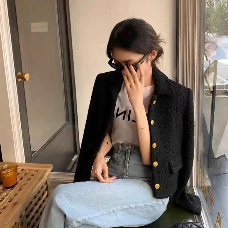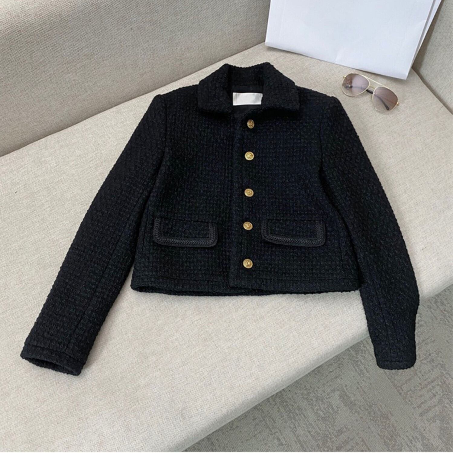 アウター ジャケット 上着 ショート丈 袖あり 長袖 ラウンドネック 襟付き ストレート ワイド ポケット 前開き ツイード かわいい 大人可愛い カジュアル 上品 おしゃれ お洒落 レトロ 大人女子 こなれ感 ラフ キュート 個性的 主役級 存在感 春 秋 冬 10代 20代 30代 女性用 ママ 女の子 オフィス ビジネス OL 通勤 学生 通学 デート お出かけ 女子会 休日 着回し 普段使い 韓国 オルチャン ファッション コーデ スタイル 体系カバー S M L XL ゆったり ゆる 黒 | Ritta