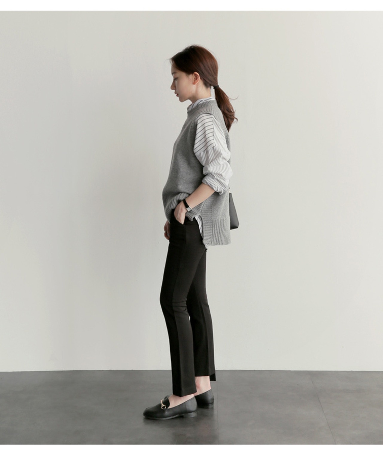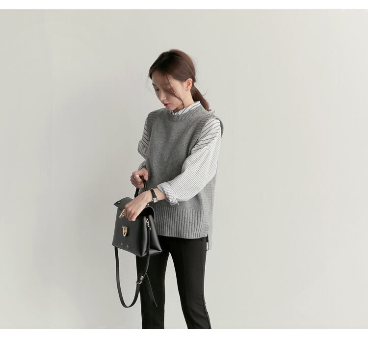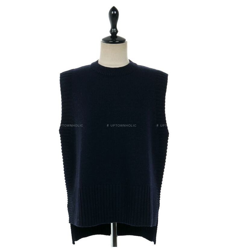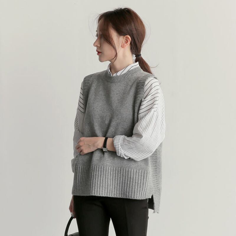 シンプルなデザインのニットベスト。