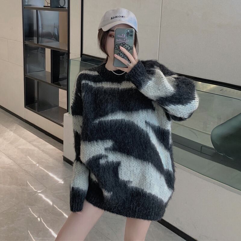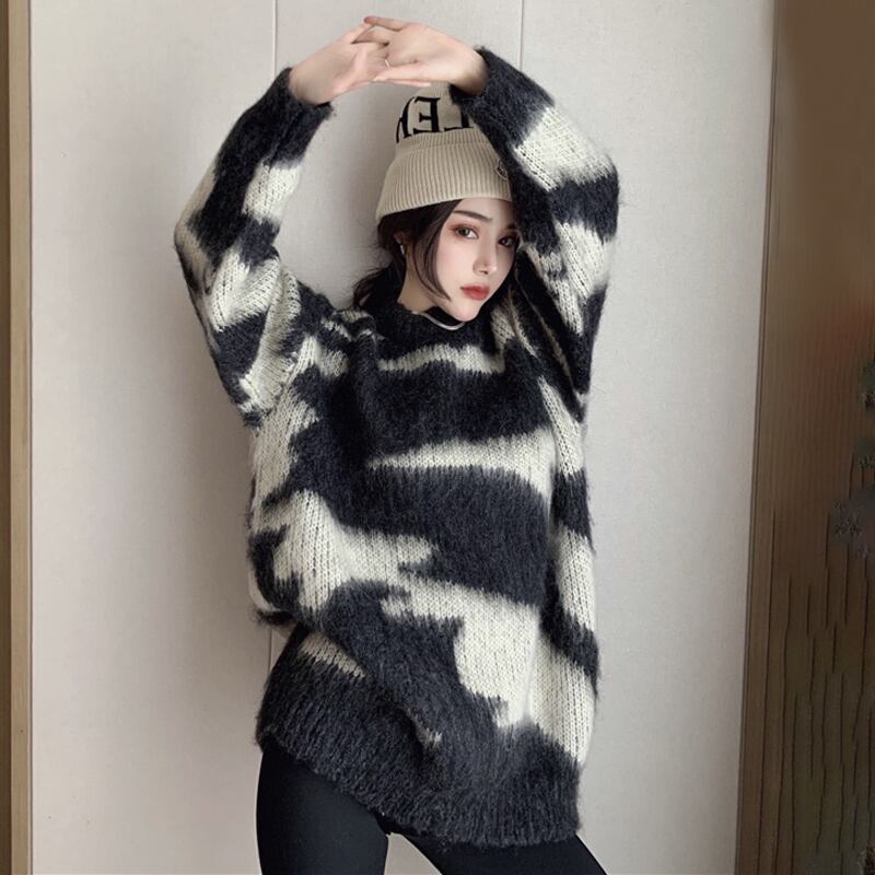 ふわふわゼブラ柄ニットプルオーバー トップス 袖あり 長袖 ドロップショルダー ラウンドネック もこもこ モコモコ ふわふわ 伸縮性 ニット かわいい 大人可愛い カジュアル 大人 かっこいい 大人女子 こなれ感 クール 主役級 存在感 ゼブラ柄 秋 冬 10代 20代 30代 40代 女性用 着回し 普段使い ファッション コーデ スタイル 楽ちん 体型カバー S M L XL ゆったり カジュアルコーデ 大人カジュアル パンツコーデ スカートコーデ | Ritta