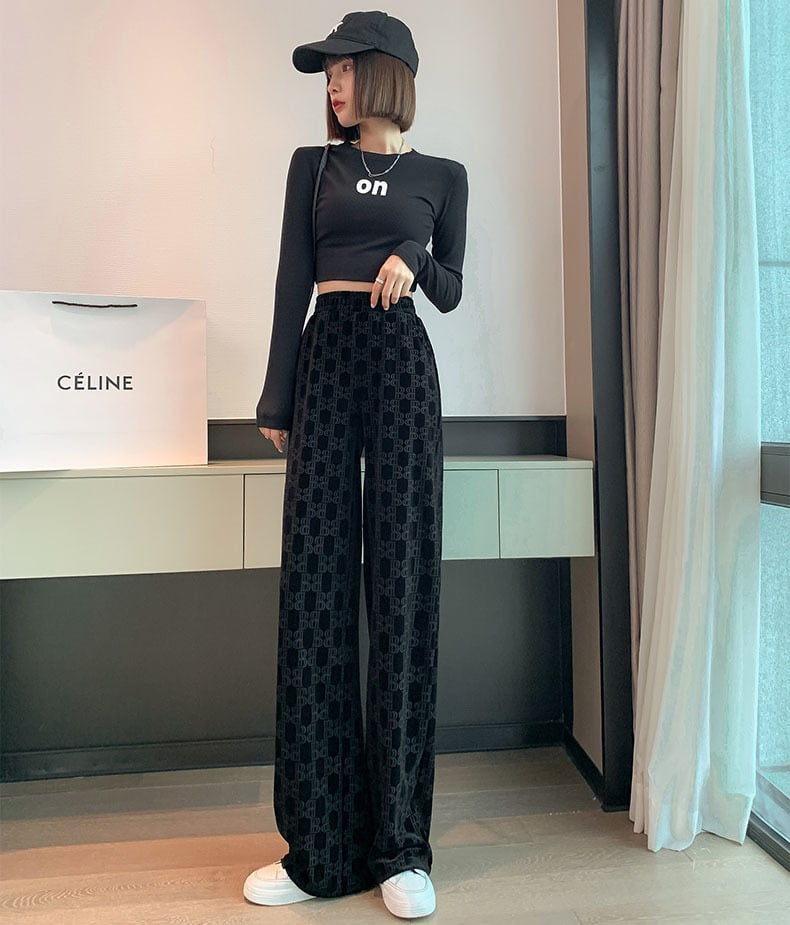 総柄ベルベットワイドパンツ ボトムス ワイドパンツ ロング ロング丈 ワイド ハイウエスト ウエストゴム 伸縮性 ポリエステル カジュアル 大人 上品 おしゃれ お洒落 かっこいい レトロ 大人女子 こなれ感 個性的 存在感 柄 春 秋 10代 20代 30代 40代 レディース 女性用 ママ お出かけ 休日 着回し 普段使い お揃い ファッション コーデ スタイル 楽ちん 美脚 脚長 フリーサイズ 黒 ブラック カジュアルコーデ ショート丈トップス 着心地抜群 大人カジュアル リラックスコーデ | Ritta