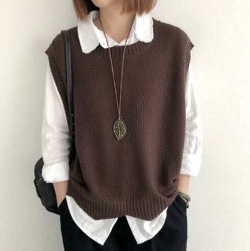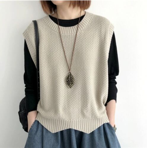 裾ギザギザニットベストプルオーバー トップス 袖なし ラウンドネック 伸縮性 綿 かわいい シンプル カジュアル おしゃれ お洒落 レトロ 大人女子 こなれ感 無地 春 秋 10代 20代 30代 40代 50代 60代 女性用 ママ お出かけ 休日 着回し 普段使い 重ね着 ファッション スタイル 楽ちん フリーサイズ 黒 ブラック 茶色 ブラウン ベージュ アプリコット レンガ ダークグレー ダークブルー カラバリ | Ritta