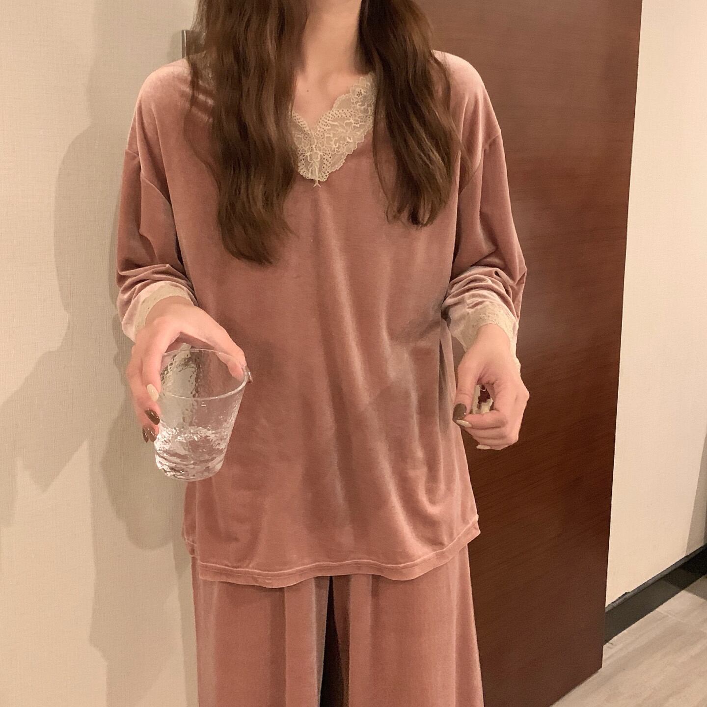 ルームウェア パジャマ プルオーバー 部屋着 寝巻き ナイトウェア トップス レギュラー丈 袖あり 長袖 ボリューム袖 Vネック 襟なし ワイド レース ウエストゴム 伸縮性 かわいい きれいめ シンプル カジュアル レトロ 大人可愛い ラフ キュート ガーリー ルーズ 無地 春 秋 10代 20代 30代 レディース 女性用 ママ お泊まり 休日 楽ちん モテ 体系カバー フリーサイズ 大きめ ゆったり ゆる 色展開 4色 緑 グリーン 紫 パープル ピンク 春カラー 秋カラー カラバリ 濃いグリーン | Ritta