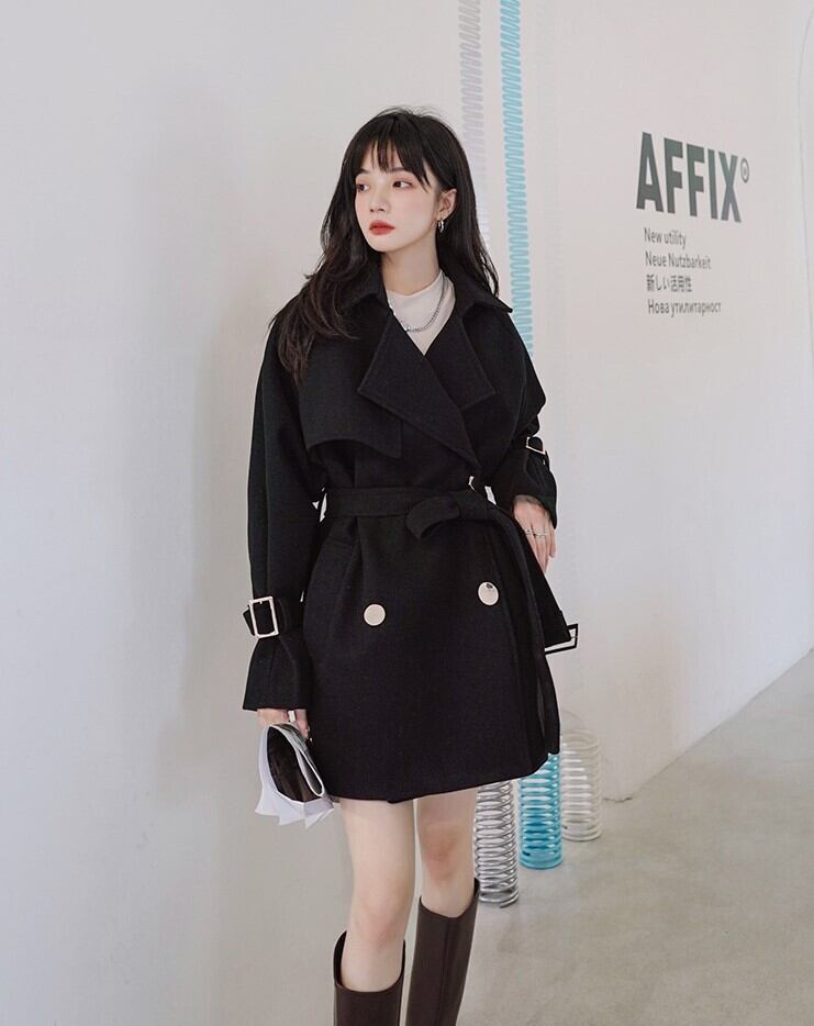 アウター コート 上着 トレンチコート ミディアム丈 袖あり 長袖 ボリューム袖 Vネック 襟付き ストレート ワイド ベルト ウエストマーク ポケット 前開き ウール かわいい 大人可愛い きれいめ シンプル カジュアル 大人 上品 おしゃれ お洒落 かっこいい 大人女子 こなれ感 ガーリー 無地 秋 冬 10代 20代 30代 オフィス ビジネス OL 通勤 学生 通学 デート 女子会 休日 イベント ホテル レストラン 着回し 普段使い 定番 S M ゆったり ゆる 黒 ブラック | Ritta
