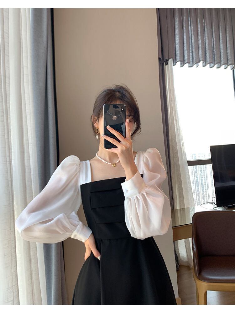 ワンピース デート フレアワンピース ワンピドレス ミディアム丈 ミドル丈 袖あり 長袖 ボリューム袖 パフスリーブ スクエアネック フレア スリム Aライン シフォン 切り替えデザイン ドッキング 透け感 シースルー 異素材MIX 大人可愛い きれいめ シンプル 大人 上品 おしゃれ おしゃれ お洒落 ガーリー 都会的 シック エレガント 主役級 フォーマル アメリカン風 無地 春 秋 結婚式 二次会 披露宴 20代 30代 40代 レディース 女性用 デート お出かけ 休日 パーティー ホテル | Ritta