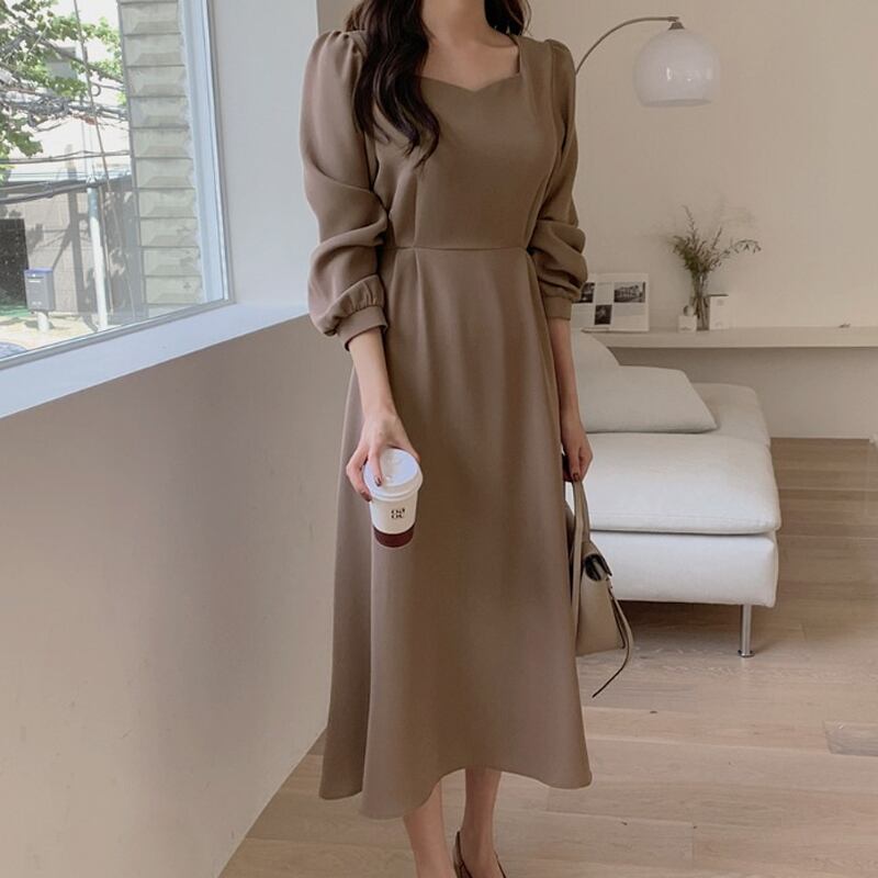 ワンピース 膝下 ミモレ ミモレ丈 袖あり 長袖 ボリューム袖 パフスリーブ 襟なし ノーカラー フレア セミフレア スリム きれいめ シンプル 大人 上品 おしゃれ お洒落 レトロ キュート エレガント モダン フォーマル ベーシック 無地 無地 春 秋 授業参観 20代 30代 40代 50代 60代 レディース 女性用 ママ ビジネス OL 通勤 デート お出かけ 女子会 休日 パーティー リゾート 旅行 ホテル ガーデン レストラン ショッピング モテ トレンド S M L 茶色 ブラウン | Ritta
