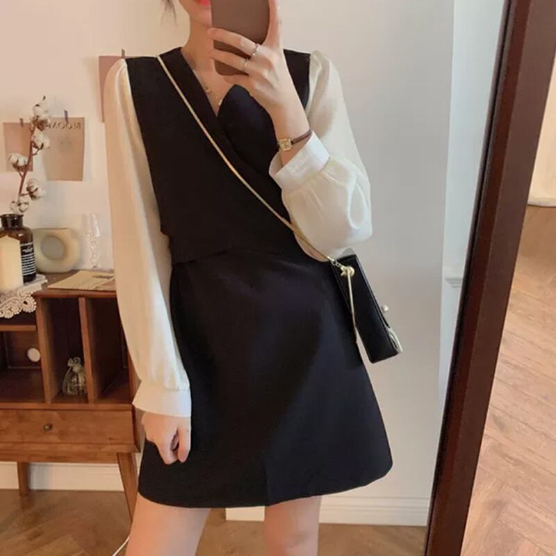 ワンピース デート ワンピドレス ショート ショート丈 膝上 袖あり 長袖 パフスリーブ Vネック カシュクール 襟なし ノーカラー スリム ウエストリボン バックリボン 切り替えデザイン ドッキング 大人可愛い きれいめ シンプル 上品 おしゃれ お洒落 レトロ 大人女子 大人女子 キュート 都会的 クール エレガント モダン 主役級 フォーマル 無地 春 秋 謝恩会 結婚式 二次会 20代 30代 レディース 女性用 ビジネス OL 通勤 デート お出かけ 休日 パーティー 旅行 ホテル | Ritta