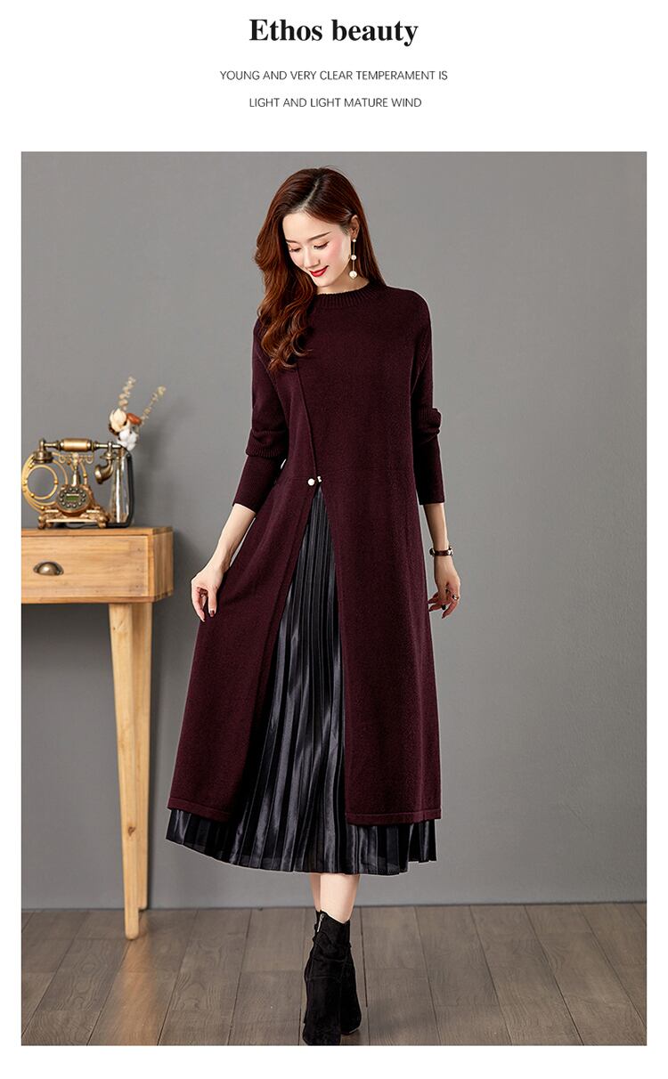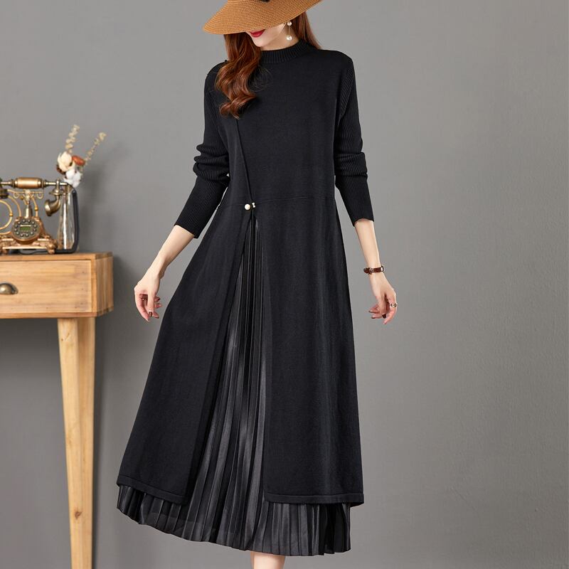 ワンピース デート ニットワンピース ワンピドレス ロング ロング丈 袖あり 長袖 クルーネック 襟なし ノーカラー ストレート プリーツ スリット 切り替えデザイン ドッキング ニット 大人可愛い きれいめ シンプル 大人 上品 おしゃれ お洒落 レトロ 大人女子 大人女子 都会的 クール エレガント モダン 主役級 無地 春 秋 冬 謝恩会 結婚式 二次会 20代 30代 40代 レディース 女性用 ビジネス OL 通勤 デート お出かけ 休日 パーティー 旅行 ホテル レストラン ショッピング | Ritta