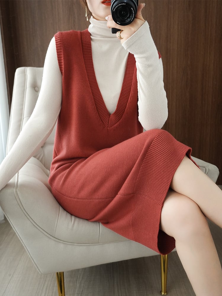ワンピース ニットワンピース 膝下 ミディアム丈 ミドル丈 ノースリーブ Vネック 襟なし ノーカラー ストレート Iライン ニット 大人可愛い きれいめ シンプル カジュアル レトロ 大人女子 こなれ感 ラフ ルーズ クール シック エレガント 抜け感 ぬけ感 ぬけ感 ベーシック 無地 春 秋 20代 30代 40代 レディース 女性用 ママ ビジネス OL 通勤 デート お出かけ 女子会 休日 パーティー イベント リゾート ホテル レストラン ショッピング 普段使い 重ね着 レイヤード 楽ちん | Ritta