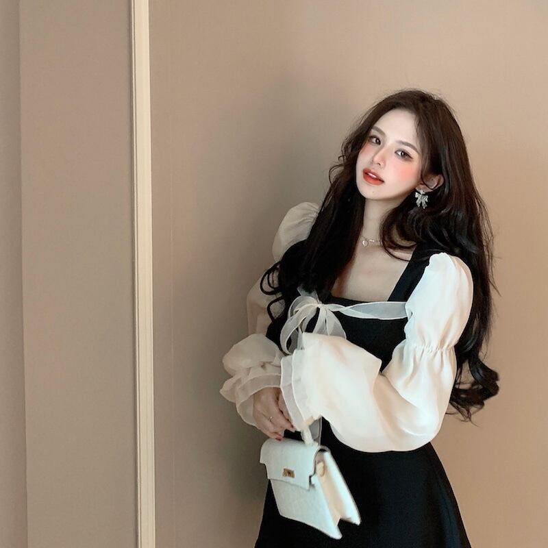 モノトーンデザインがシック、胸元のりぼんでガーリーに。