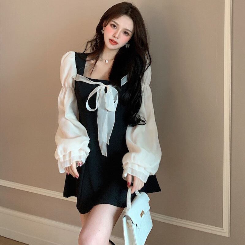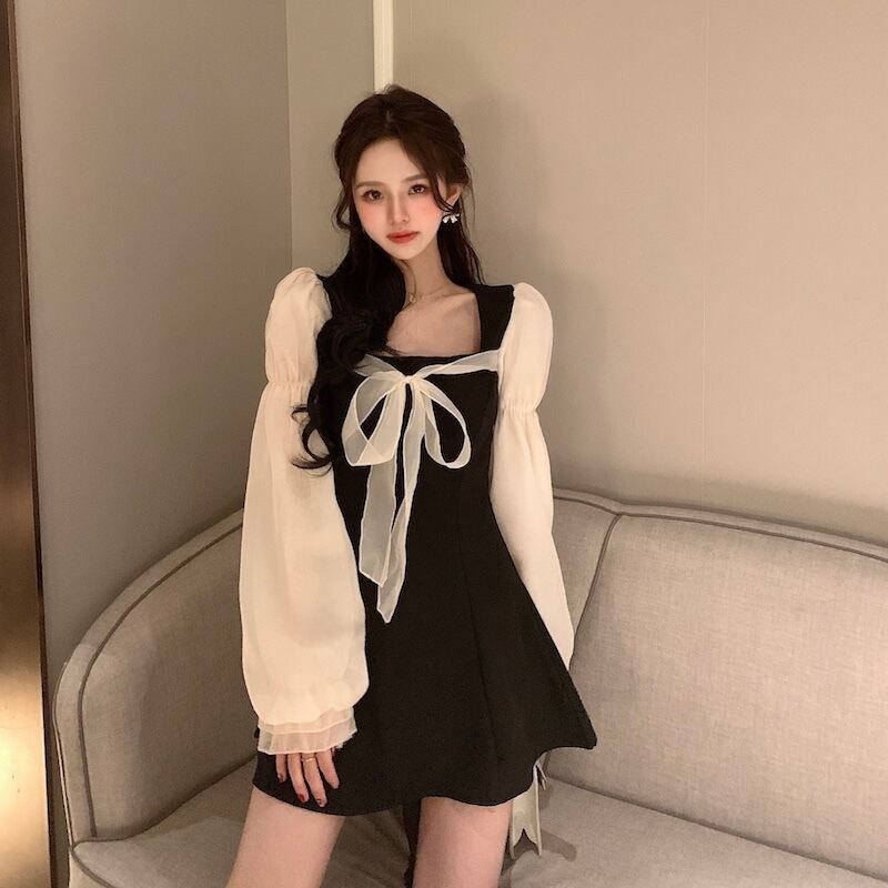 ワンピース ワンピドレス ショート ショート丈 袖あり ボリューム袖 パフスリーブ スクエアネック 襟なし ノーカラー フレア Aライン シフォン フリル リボン 切り替えデザイン ドッキング かわいい 大人可愛い きれいめ シンプル 大人 おしゃれ お洒落 大人女子 ラブリー ラブリー キュート ガーリー あざとい 都会的 シック セクシー 主役級 無地 春 秋 結婚式 二次会 披露宴 20代 30代 レディース 女性用 デート お出かけ 女子会 休日 パーティー イベント 旅行 ホテル レストラン | Ritta