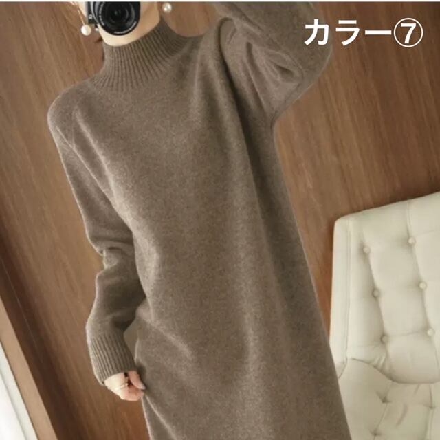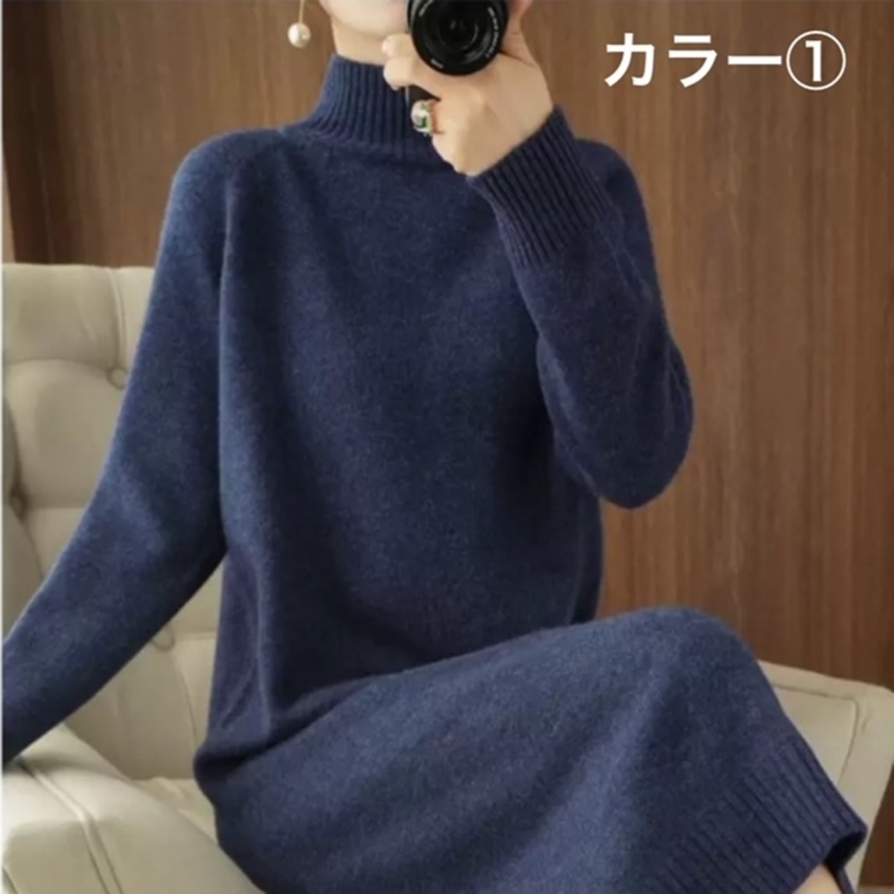 カラバリ豊富なタートルネックワンピースです。上品でシンプルなデザインなのでカジュアルにもエレガントにもなるアイテムです。