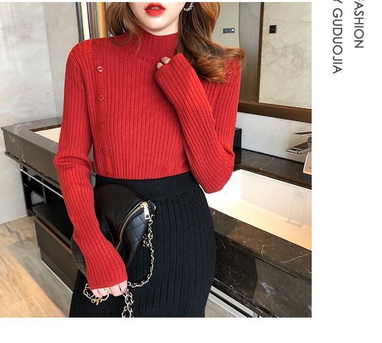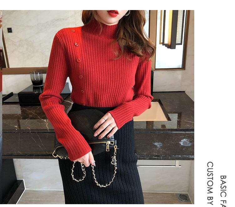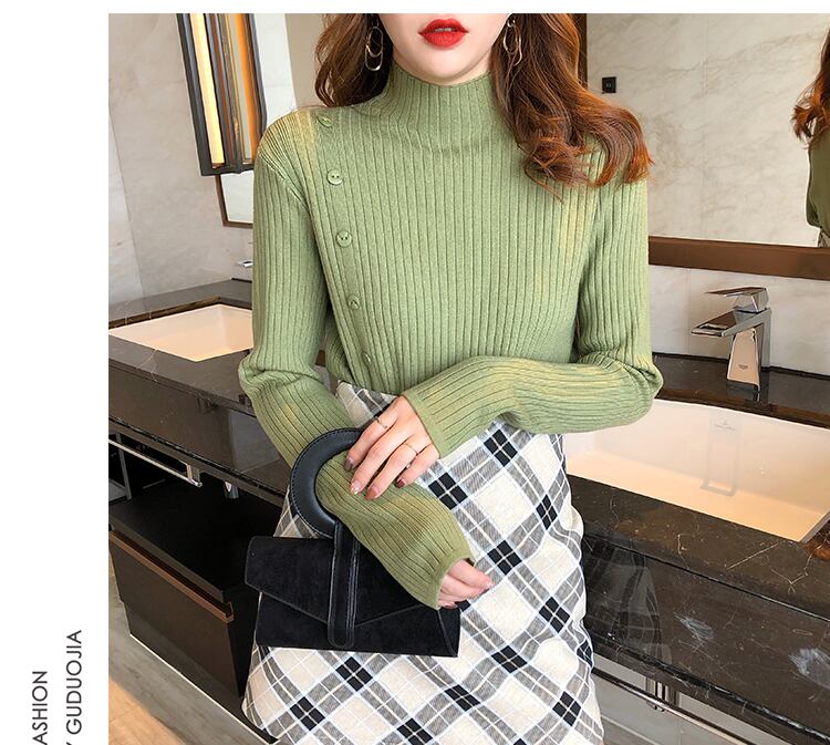 サイドボタンリブニットプルオーバー トップス ニットソー 袖あり 長袖 ハイネック ストレート アシンメトリー サイドスリット リブニット 伸縮性 かわいい 大人可愛い きれいめ シンプル カジュアル 大人 上品 おしゃれ お洒落 大人女子 こなれ感 無地 春 秋 冬 20代 30代 40代 レディース 女性用 通勤 お出かけ 休日 着回し 普段使い ファッション コーデ スタイル 楽ちん フリーサイズ 黒 ブラック 赤 レッド 緑 グリーン カジュアルコーデ きれいめコーデ オフィスカジュアル | Ritta