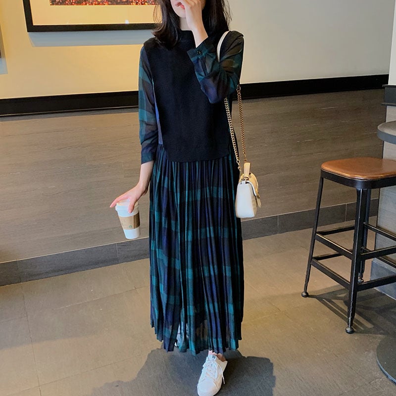 ワンピース 袖あり パフスリーブ ラウンドネック 襟なし ノーカラー ストレート プリーツ シフォン 切り替えデザイン ニット かわいい 大人可愛い シンプル カジュアル おしゃれ お洒落 レトロ こなれ感 ラフ キュート ルーズ 都会的 クール モード系 主役級 主役級 存在感 抜け感 ぬけ感 カレッジ風 学生風 ベーシック 無地 柄 チェック柄 タータンチェック マドラスチェック 春 秋 授業参観 10代 20代 30代 40代 レディース 女性用 ママ 学生 通学 デート お出かけ 女子会 休日 | Ritta