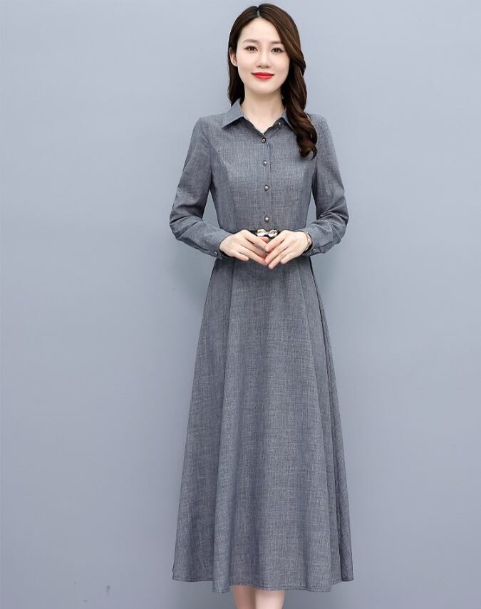 上品さ漂うベーシックなデザインの長袖ワンピース。