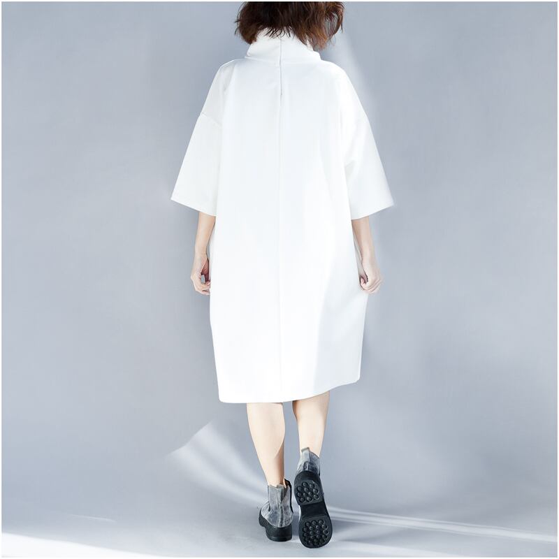 トップス ワンピース カットソー 膝丈 ひざ丈 袖あり 5分袖 五分袖 ドロップショルダー ハイネック タートルネック ワイド シンプル カジュアル おしゃれ お洒落 かっこいい レトロ こなれ感 ラフ メンズライク ボーイッシュ ユニセックス ルーズ 個性的 クール クール シック モード系 抜け感 クラシカル ベーシック 無地 春 秋 10代 20代 30代 レディース 女性用 ママ 学生 通学 お出かけ 休日 イベント 旅行 ショッピング 着回し 使い回し 普段使い ヘビロテ 重ね着 レイヤード