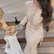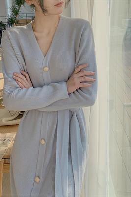 ウエストのリボンがガーリーな印象のロングカーディガンです。ワンピースでもご使用いただけます。