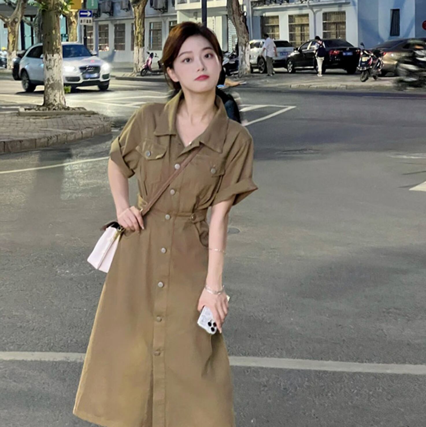 スカート ワンピース シャツ ワンピドレス ミディアム丈 ミドル丈 袖あり 半袖 襟付き ポロカラー Aライン ポケット 前開き かわいい シンプル カジュアル おしゃれ お洒落 大人可愛い 大人女子 こなれ感 ラフ ルーズ 無地 春 夏 10代 20代 30代 40代 レディース 女性用 ママ オフィス ビジネス OL 通勤 学生 通学 お出かけ 休日 ショッピング 着回し 普段使い コーデ スタイル 体系カバー S M L XL 2XL 3XL 小さいサイズ 大きいサイズ カラー 茶色 ブラウン | Ritta