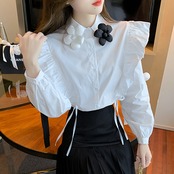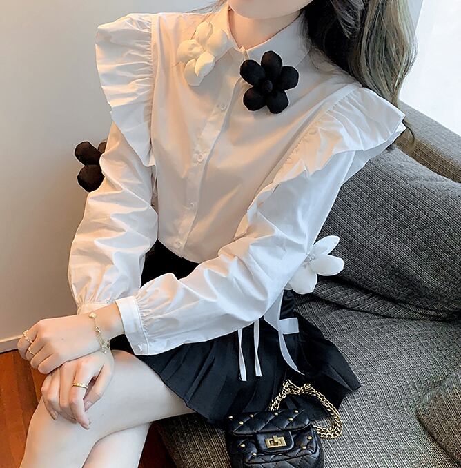 トップス シャツ ブラウス 白シャツ 袖あり 長袖 スリム ストレート フリル かわいい 大人可愛い きれいめ シンプル カジュアル 大人 上品 おしゃれ お洒落 かっこいい レトロ 大人女子 こなれ感 ラフ ラブリー キュート ガーリー モード系 エレガント 主役級 存在感 フォーマル とろみ感 抜け感 無地 フラワー 春 秋 冬 10代 20代 30代 40代 レディース デート お出かけ 女子会 休日 パーティー イベント ホテル レストラン 着回し 普段使い 韓国 韓国系 オルチャン ファッション | Ritta
