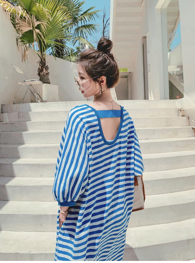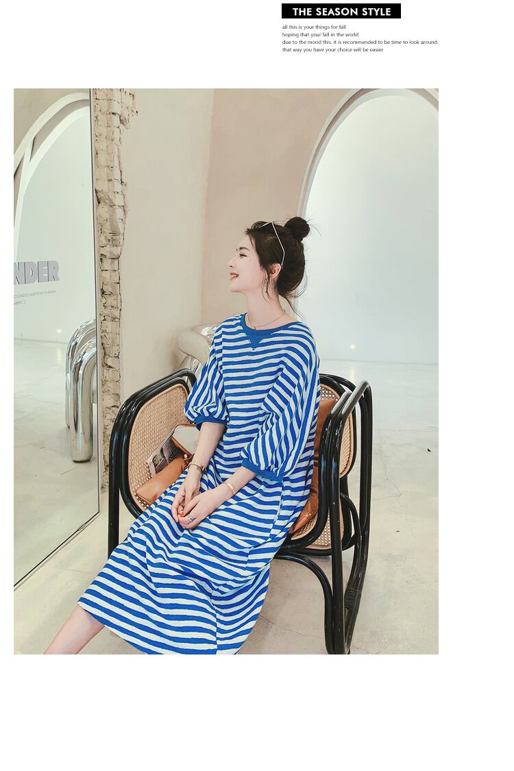 ワンピース ロング ロング丈 袖あり 5分袖 五分袖 ボリューム袖 パフスリーブ Uネック ボートネック 襟なし ノーカラー ストレート ワイド バイカラー 配色 薄手 シンプル カジュアル おしゃれ お洒落 レトロ こなれ感 ラフ メンズライク ボーイッシュ ボーイッシュ ルーズ 抜け感 ボーダー ストライプ 春 夏 10代 20代 30代 40代 50代 60代 レディース 女性用 ママ マタニティ お出かけ 休日 アウトドア リゾート 旅行 海 プール ショッピング 着回し 使い回し 普段使い | Ritta