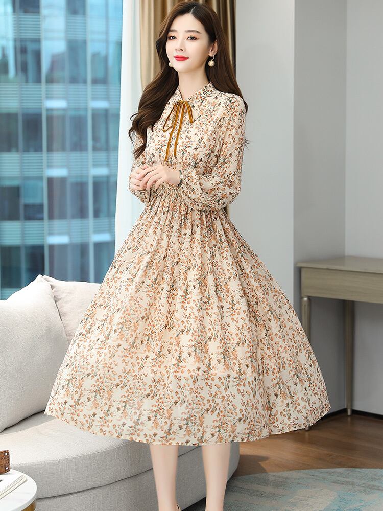 ワンピース シャツワンピース ミモレ ミモレ丈 ロング ロング丈 袖あり 長袖 パフスリーブ 襟付き りぼんタイ Aライン 透け感 薄手 大人可愛い きれいめ 大人 上品 おしゃれ お洒落 レトロ 大人女子 ラブリー キュート ガーリー 都会的 都会的 エレガント ラグジュアリー 主役級 花柄 小花柄 フラワー 春 秋 謝恩会 結婚式 二次会 授業参観 20代 30代 レディース 女性用 ビジネス OL 通勤 デート お出かけ 休日 パーティー イベント リゾート 旅行 レストラン ショッピング | Ritta