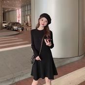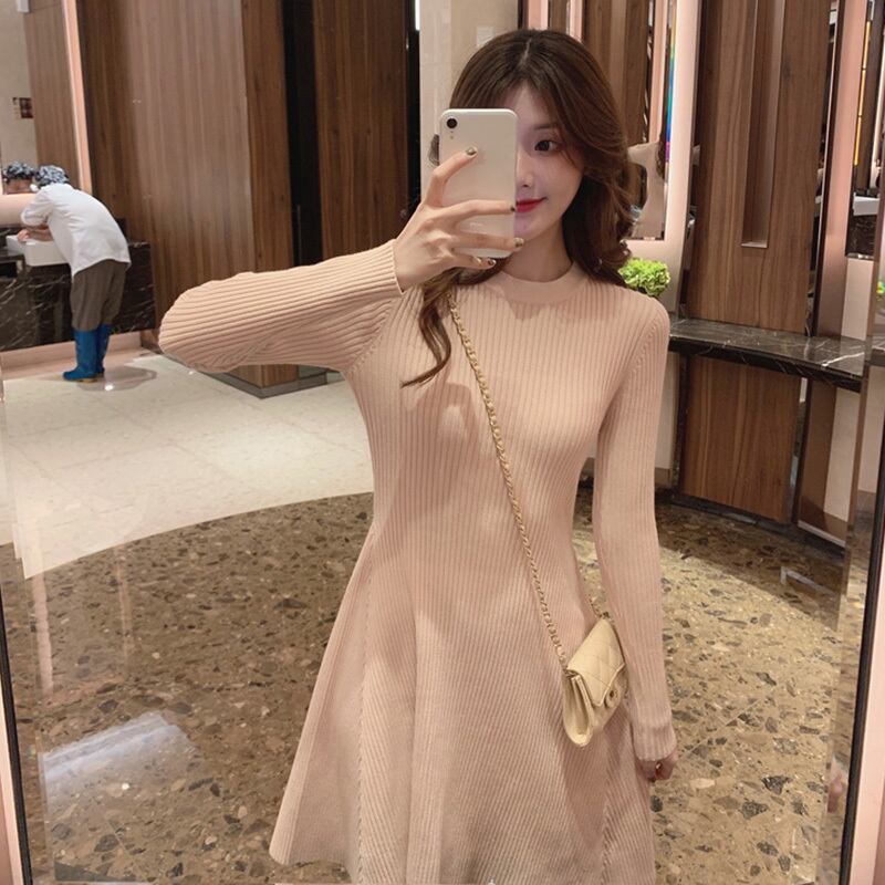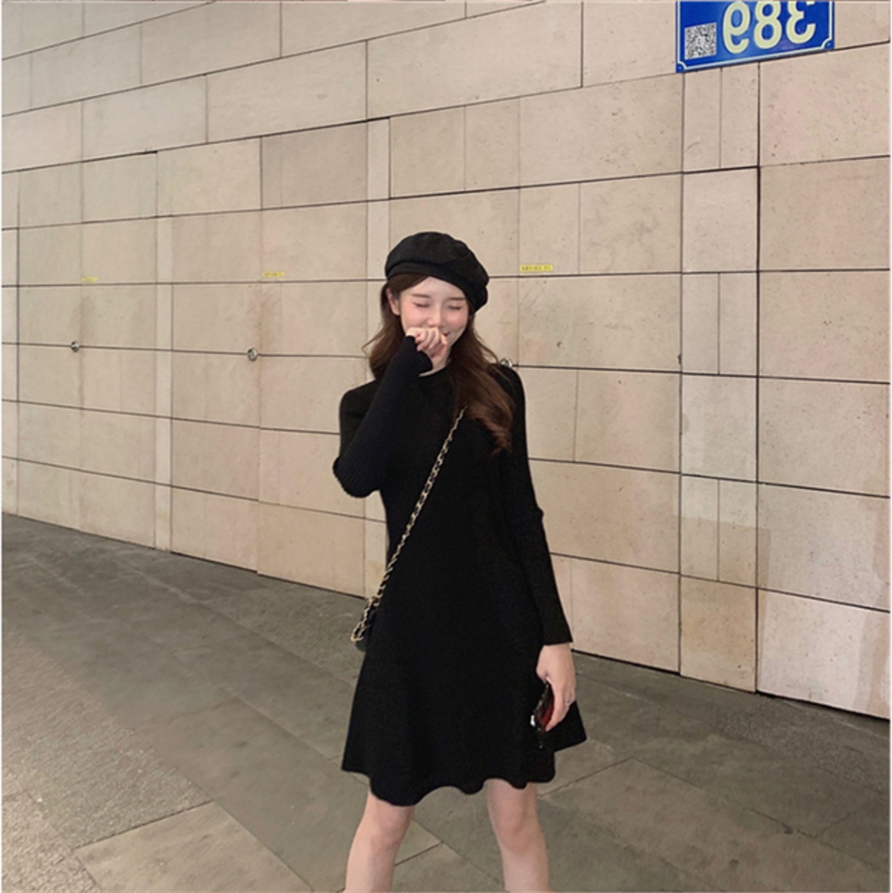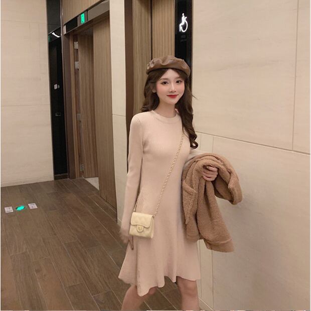 スカート ワンピース ニットスカート ショート ショート丈 膝上 袖あり 長袖 ラウンドネック 襟なし スリム 伸縮性 ニット 可愛い かわいい きれいめ シンプル カジュアル おしゃれ お洒落 レトロ 大人可愛い 大人女子 ラブリー キュート ガーリー 無地 秋 冬 10代 20代 30代 レディース 女性用 ママ 学生 通学 デート お出かけ 女子会 ショッピング 着回し 普段使い 韓国 韓国系 オルチャン ファッション コーデ スタイル モテ サイズ S M L XL アプリコット 黒 ブラック | Ritta