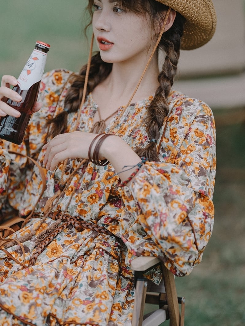 スカート ワンピース プルオーバー ミニスカート フリンジスカート ショート ショート丈 膝上 袖あり 長袖 ボリューム袖 ドルマンスリーブ パフスリーブ ランタンスリーブ ラウンドネック 襟なし フレア ボヘミアン 可愛い かわいい カジュアル おしゃれ お洒落 レトロ ラブリー キュート ガーリー 柄 花柄 小花柄 フラワー 春 10代 20代 30代 レディース 女性用 ママ 学生 お出かけ 女子会 休日 アウトドア リゾート ファッション コーデ スタイル フリーサイズ オレンジ 春カラー | Ritta