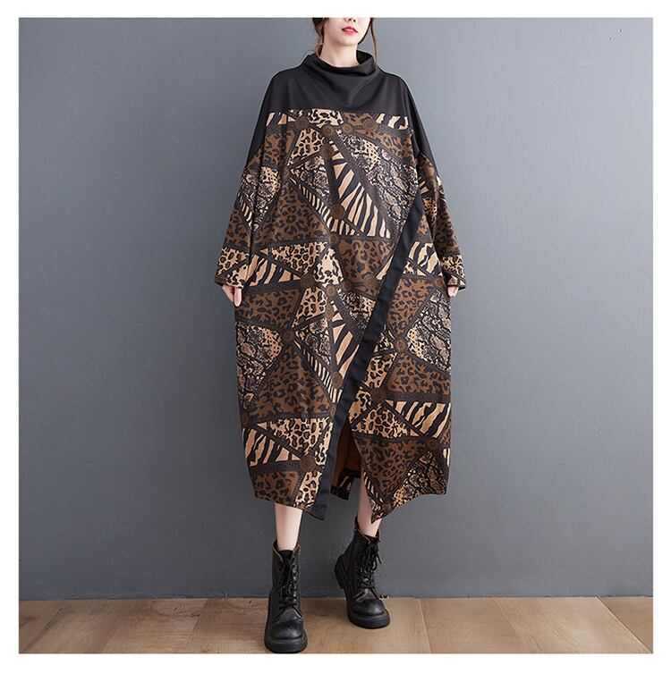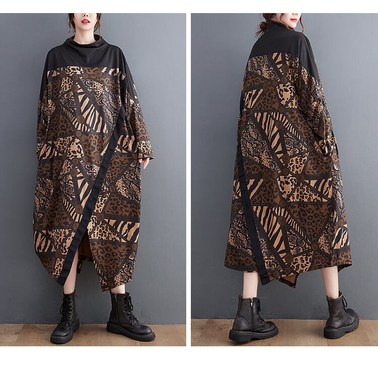 個性的 ワンピース ワンピドレス 膝下 袖あり 長袖 ラグランスリーブ ハイネック 襟なし ワイド Aライン スリット ポケット 薄手 カジュアル 大人 上品 おしゃれ お洒落 かっこいい レトロ エキゾチック 大人女子 こなれ感 ラフ ラブリー ルーズ クール モダン 主役級 存在感 とろみ感 抜け感 ヒョウ柄 アニマル柄 春 秋 レディース 女性用 ママ マタニティ お出かけ 女子会 お泊まり パーティー イベント リゾート 旅行 ガーデン レストラン 楽ちん 体系カバー インスタ映え フリーサイズ | Ritta