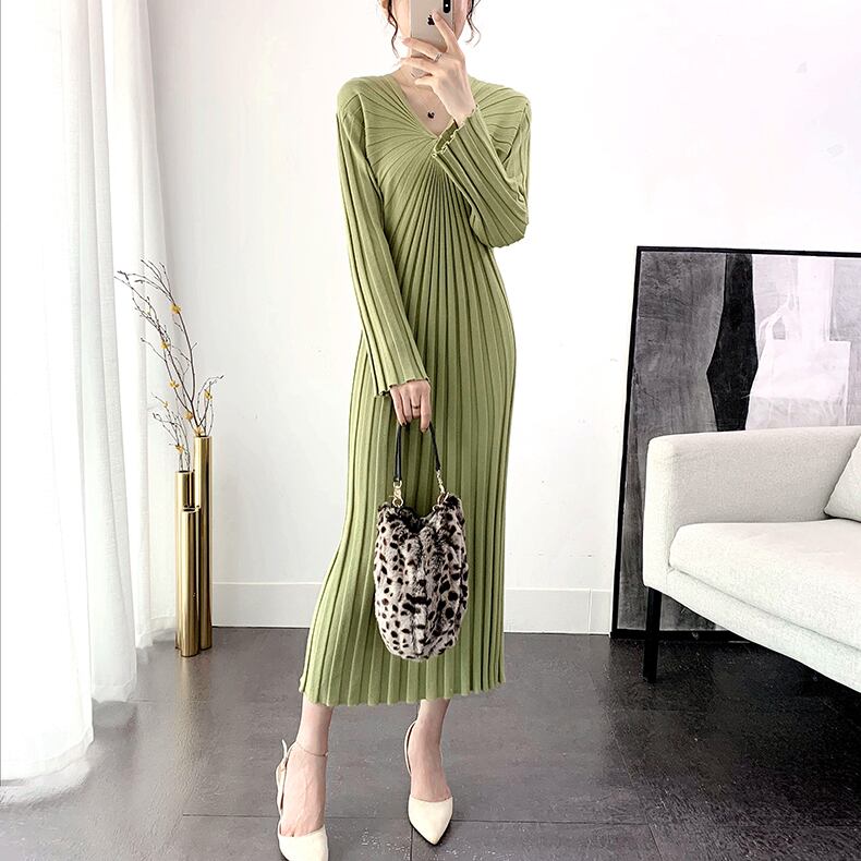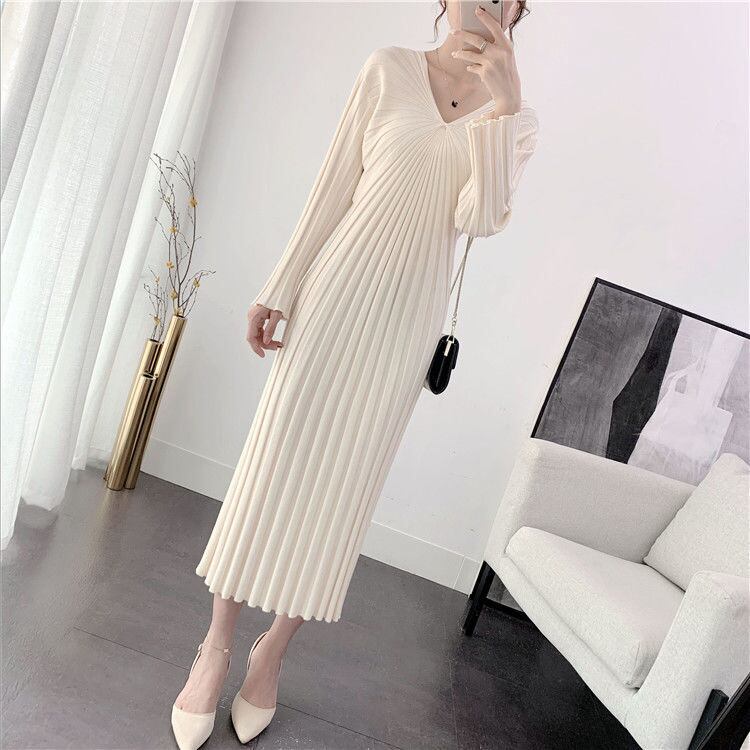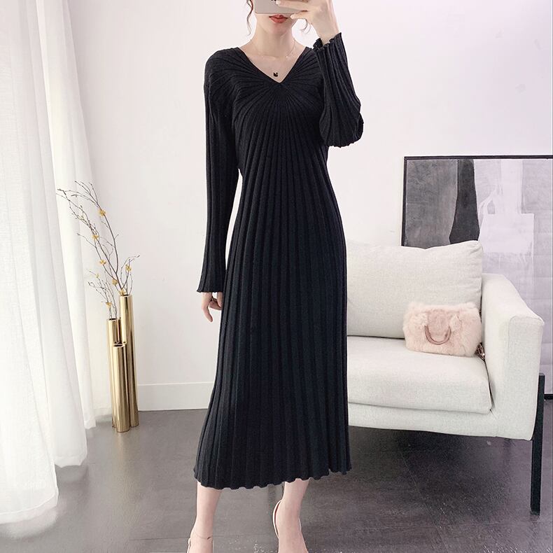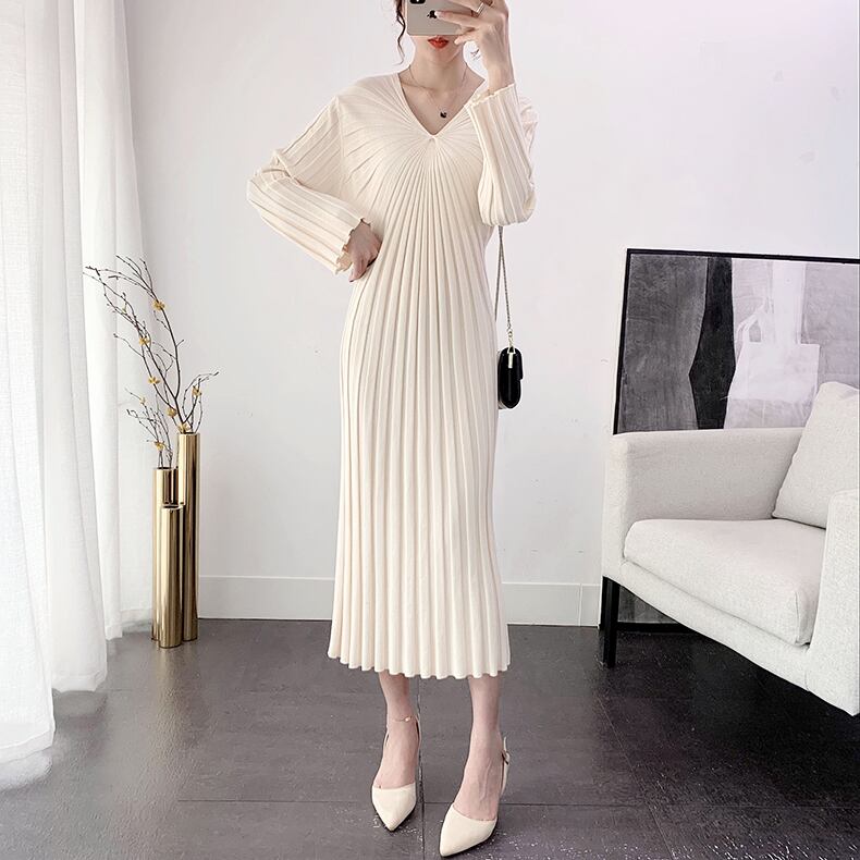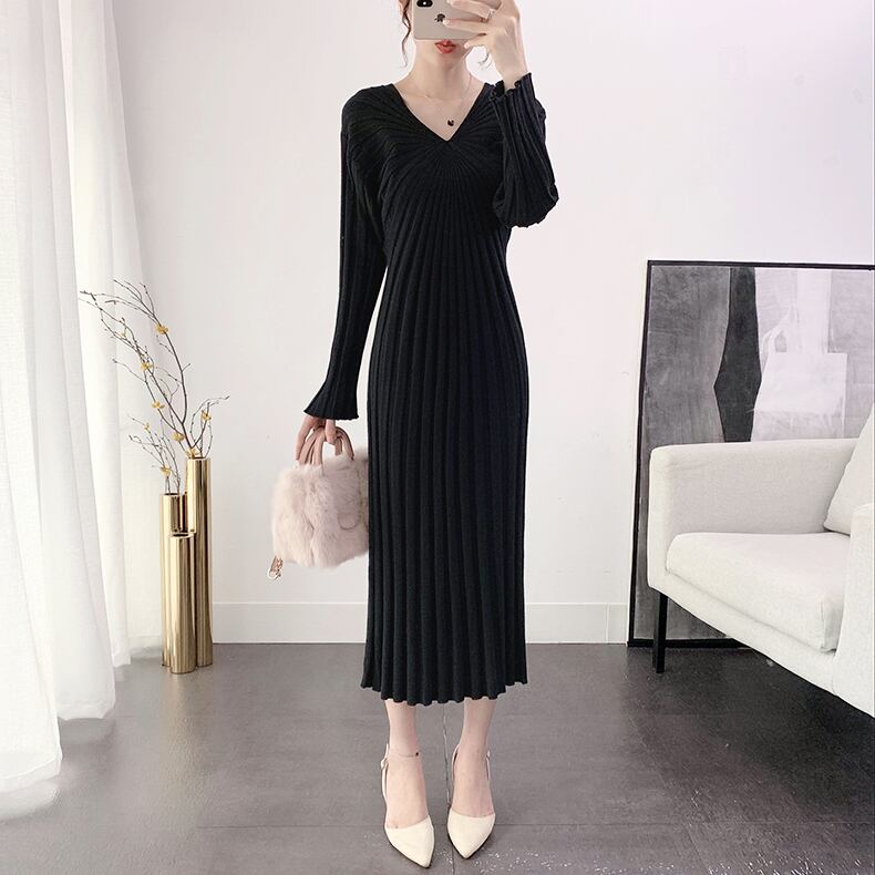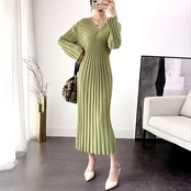 ワンピース ニットワンピース ワンピドレス ロング ロング丈 袖あり 長袖 Vネック 襟なし ノーカラー スリム ニット リブニット ストレッチ 大人可愛い きれいめ シンプル 上品 おしゃれ お洒落 レトロ ラフ キュート 都会的 クール シック シック ラグジュアリー 抜け感 ベーシック 無地 春 秋 20代 30代 40代 レディース 女性用 ビジネス OL 通勤 デート お出かけ 休日 パーティー リゾート 旅行 ホテル レストラン ショッピング 普段使い 韓国系 楽ちん モテ 定番 | Ritta